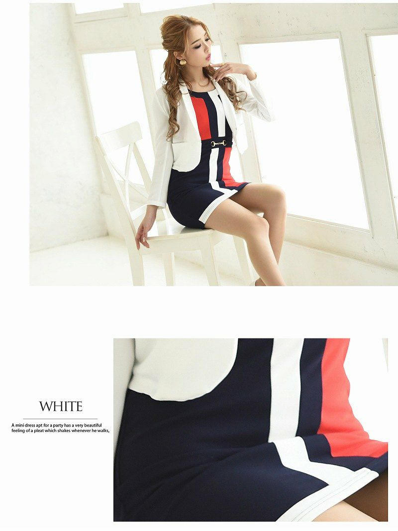 4. 【訳ありアウトレット】タイトジャケット&ストレッチワンピースキャバスーツ【Ryuyu】(S/M/L/XL)(ホワイト/ブラック)