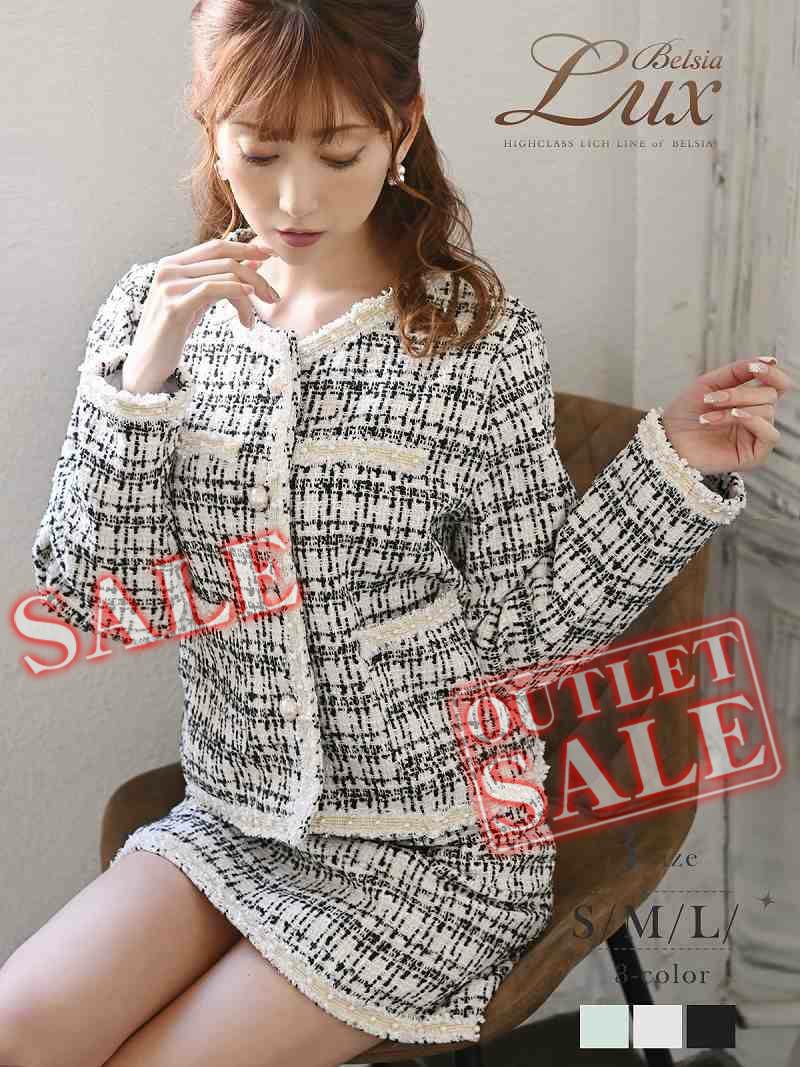 訳あり愛されツイード 【訳ありアウトレット】パステルカラーツイードスカートキャバスーツ【BelsiaLUX】(S/M/L)(ブラック/オフホワイト/ミント)