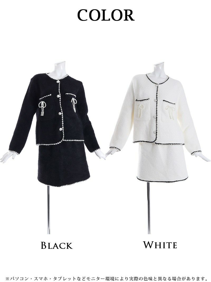 訳ありラブリーモヘア 【訳ありアウトレット】ゆったりシルエットのニットセットアップキャバスーツ【Ryuyu】(M)(ブラック/ホワイト)