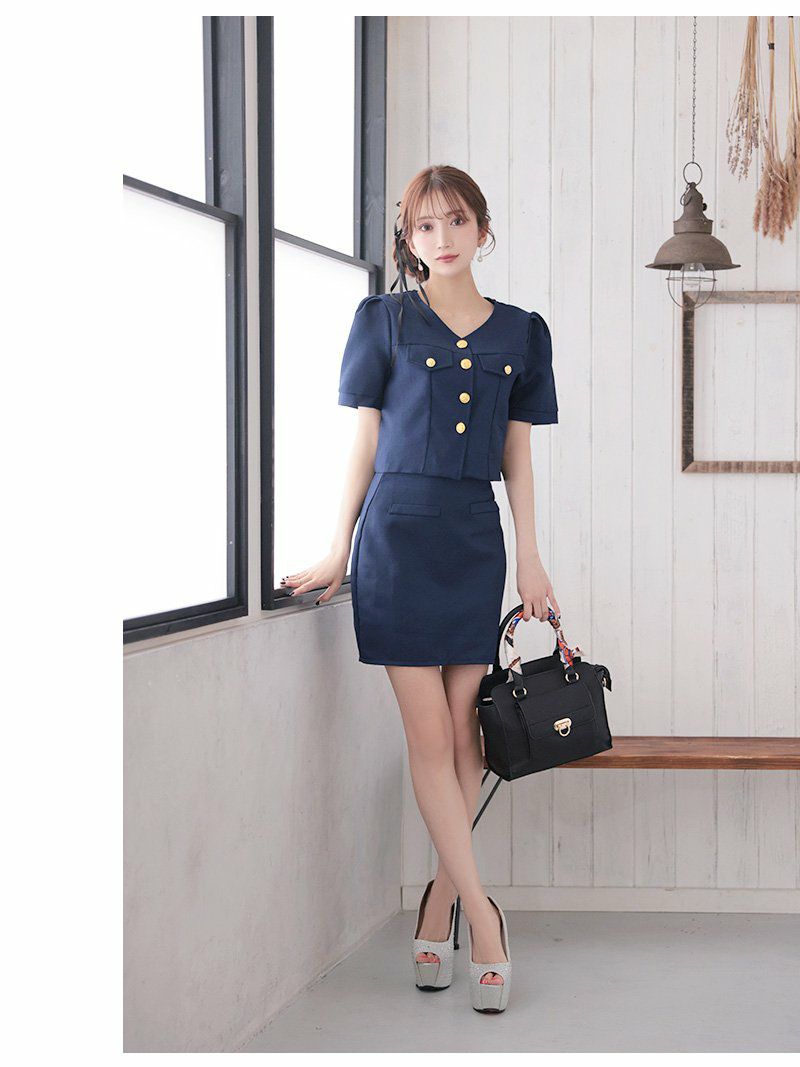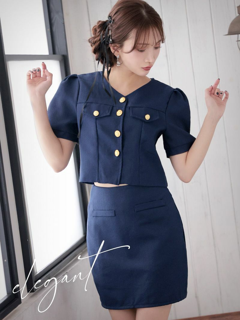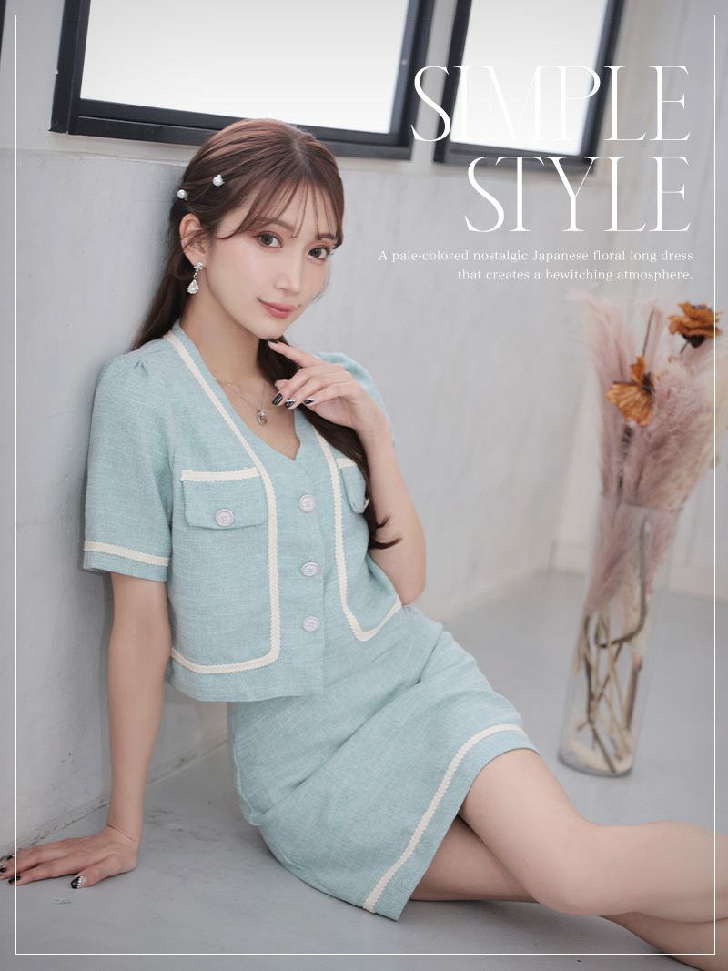 カラーツイード半袖セットアップキャバスーツ【Ryuyu】