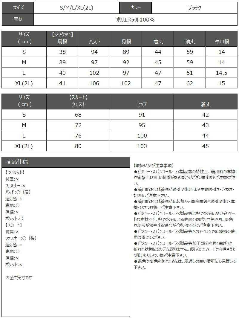 5. 上質厚手ツイード首元ビジューノーカラージャケット&ミニスカートセットアップ冬スーツ 加賀美早紀 着用キャバスーツ【BelsiaLUX】(S/M/L/XL(2L))(ブラック)