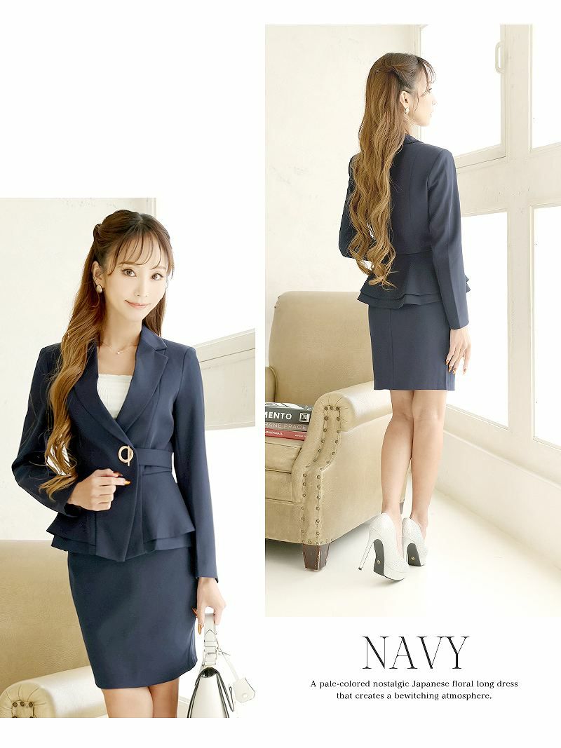 知的に魅せることができるミディ丈スーツ・フェミニンな印象のセットアップスーツ、ワンピースタイプやスカートタイプなど