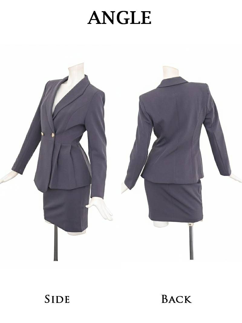 4. ゴールドボタンペプラムラインテーラードスーツセットアップ 加賀美早紀 着用 キャバスーツ【BelsiaLUX】(S/M/L/XL(2L))(ネイビー/グレー)