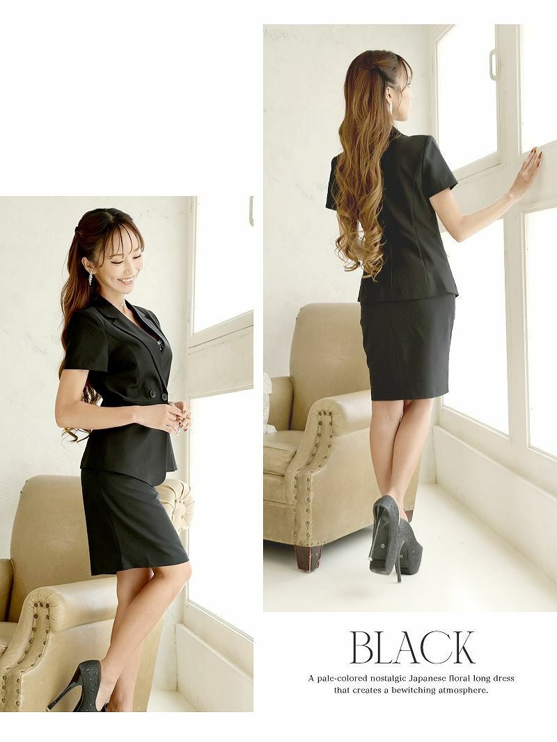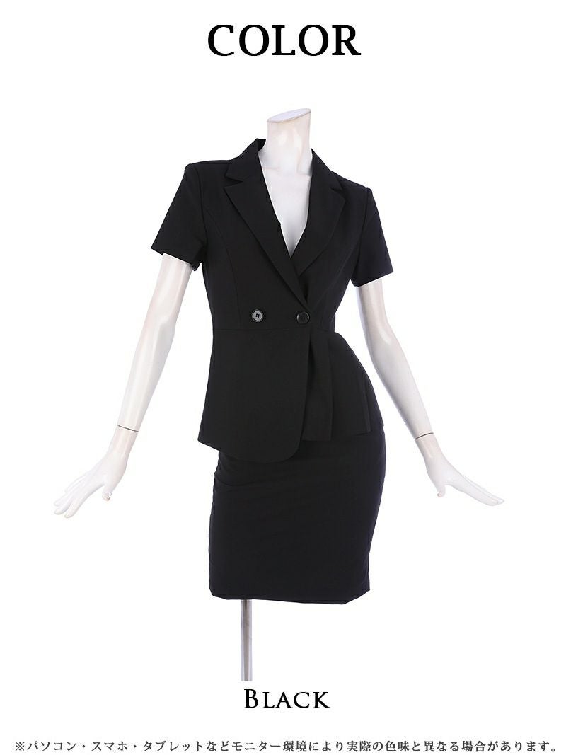4Lサイズまで展開ブラックカラー半袖ペプラムレディーススーツ 武田静加 着用 キャバスーツ【Belsia】