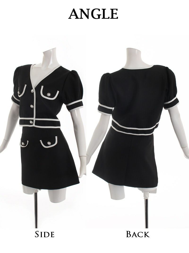 4. 【訳ありアウトレット】半袖ミニスカートセットアップキャバスーツ 【Ryuyu】(S/M)(ブラック/ホワイト)