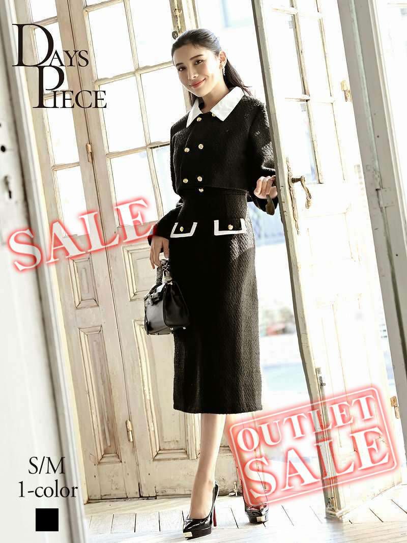 7. 【訳ありアウトレット】膝丈ワンピースセットアップ韓国キャバスーツ【DAYS PIECE】(S/M)(ブラック)