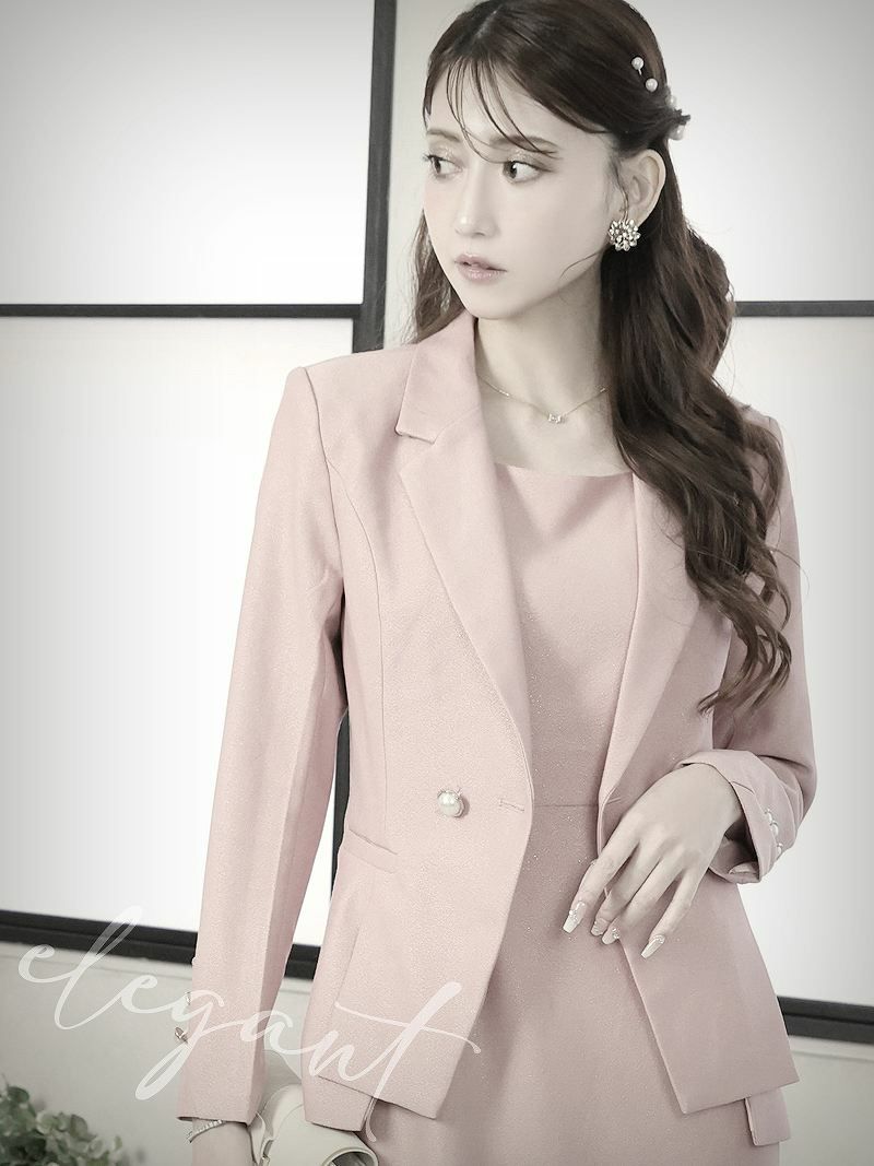 シンプルで上品なデザインが特徴のラメ素材のワンピースセット。フォーマルな場面にぴったりのキャバスーツです。