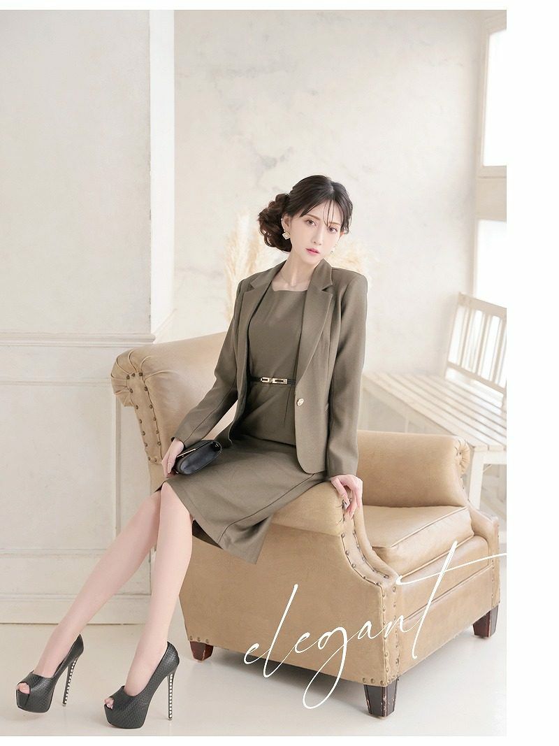 カッチリとしたジャケットとのセットなので、お店への出勤や同伴、大切なお客様との会食にも自信を持って着ていける一着です。