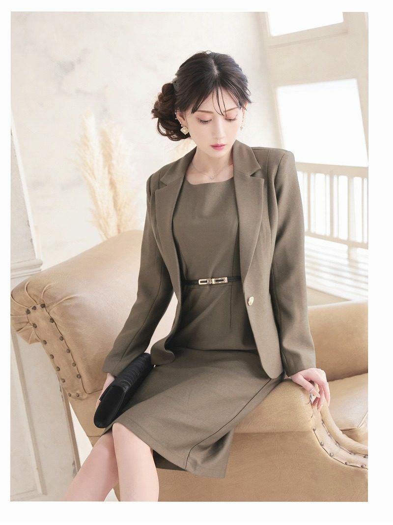 5. モスグリーンが映えるほんのり上品なラメ入りタイトセットアップワンピーススーツ 加賀美早紀 着用キャバスーツ【BelsiaLUX】(S/M/L/XL(2L))(カーキ)