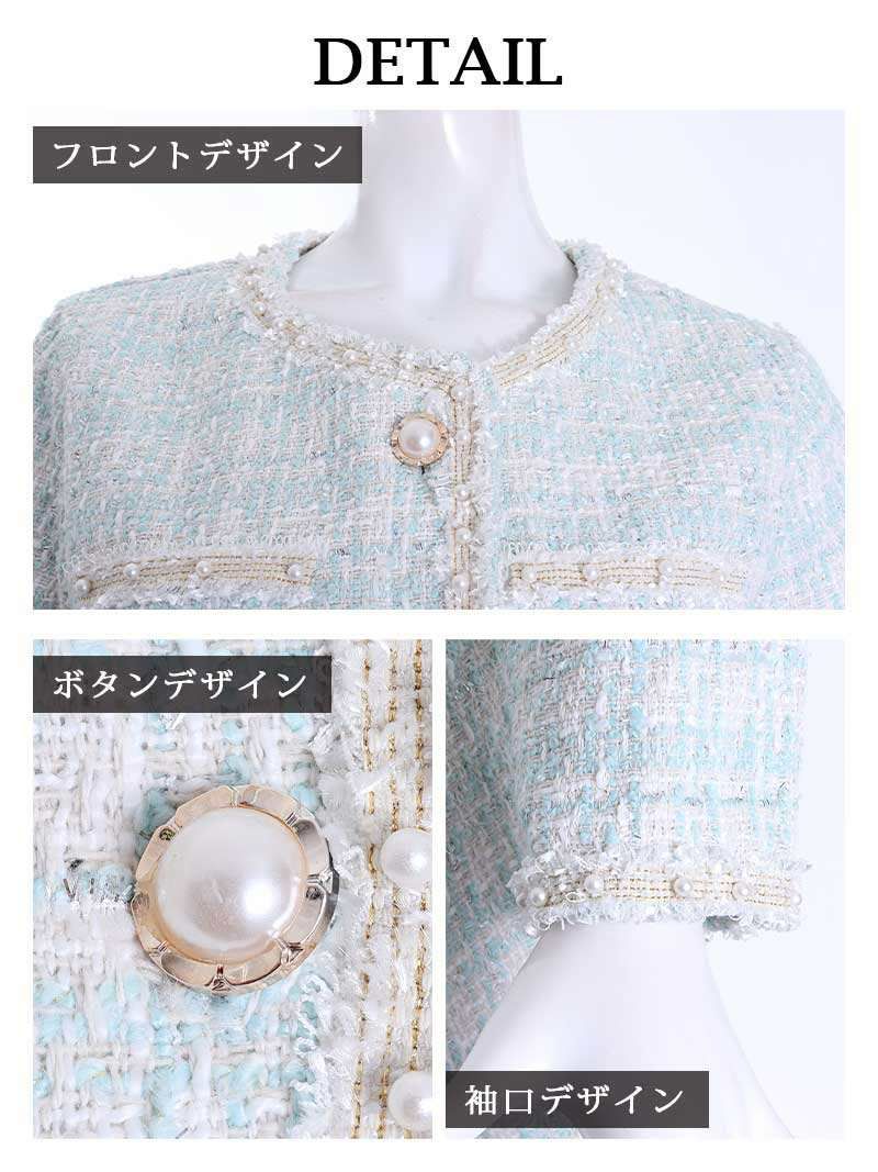 華やか顔周りスッキリカラースーツ♪ フォーマルスーツSALE¥9880→¥6916! ノーカラーミックスツイードミニ丈フォーマルスーツ 加賀美早紀 着用 キャバスーツ【BelsiaLUX】(S/M/L)(ブラック/オフホワイト/ミント)