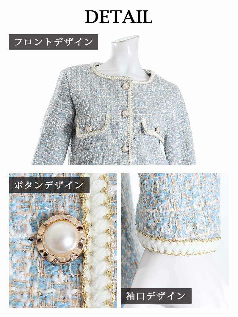 4. 【訳ありアウトレット】大人の着こなし上品ツイードママキャバスーツ【BelsiaLUX】(S/M/L)(ブラック/ブルー)
