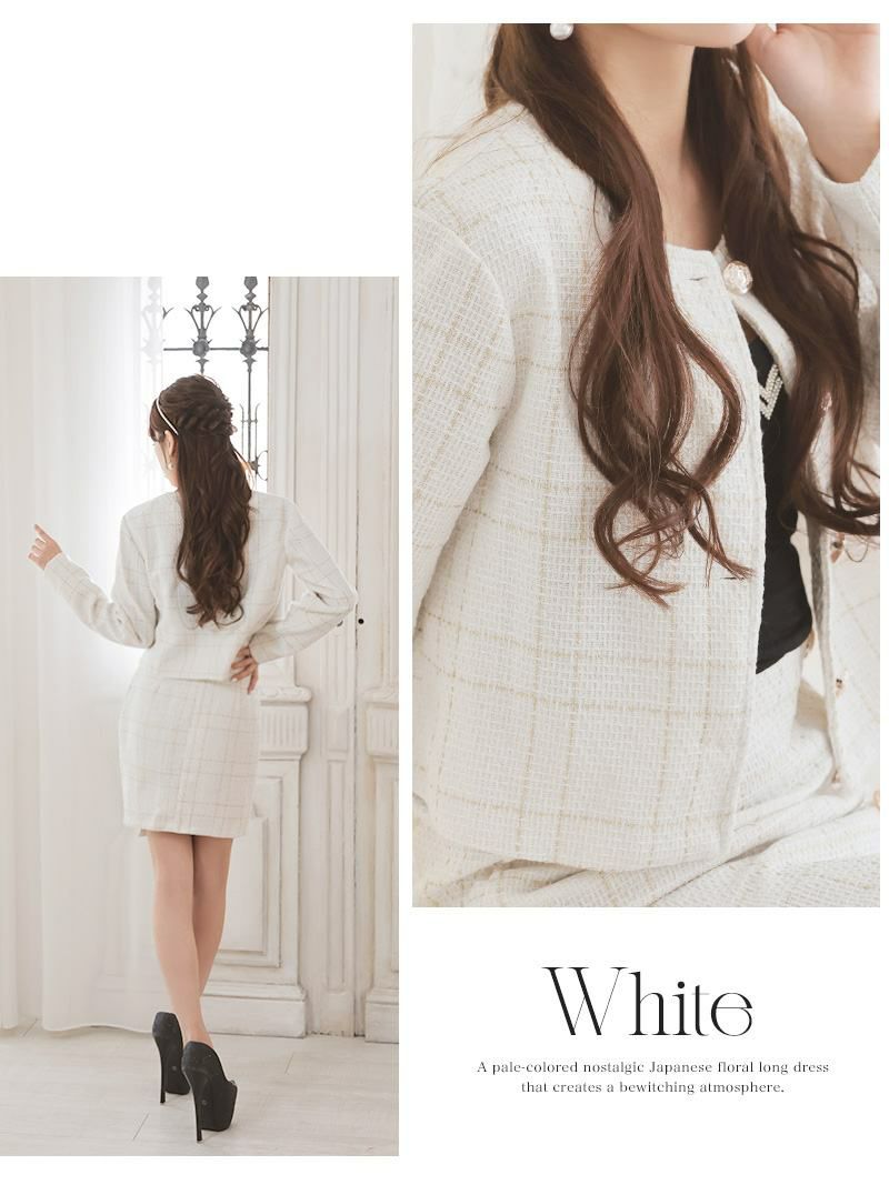 4. 先行予約割¥7390→¥7021!※一部予約販売※ゴールドラインチェック柄ノーカラーツイードセットアップキャバスーツ【Ryuyu】(S/M/L/XL(2L))(ホワイト/ネイビー)