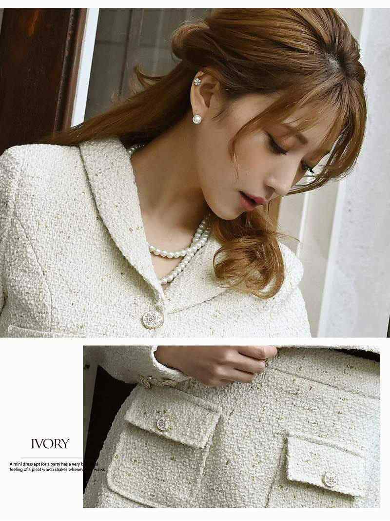 5. MIXツイードショート丈ジャケットキャバスーツ 加賀美早紀 着用レディーススーツ【Belsia】(S/M/L)(ブラック/アイボリー)