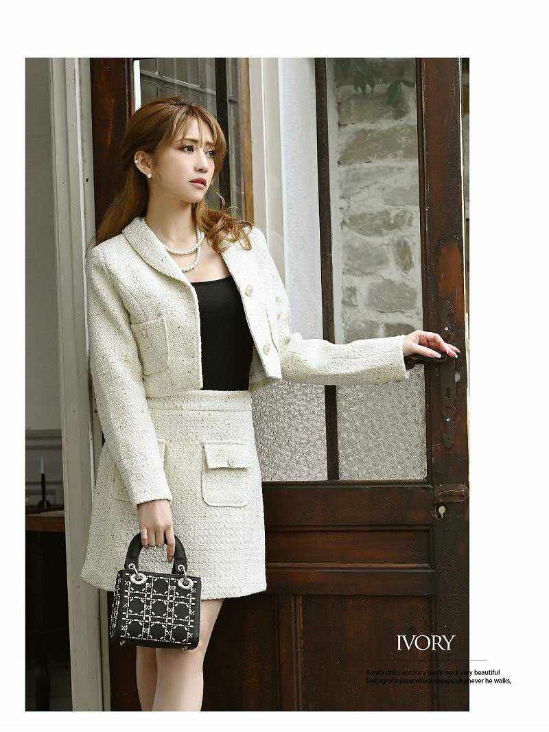 4. MIXツイードショート丈ジャケットキャバスーツ 加賀美早紀 着用レディーススーツ【Belsia】(S/M/L)(ブラック/アイボリー)