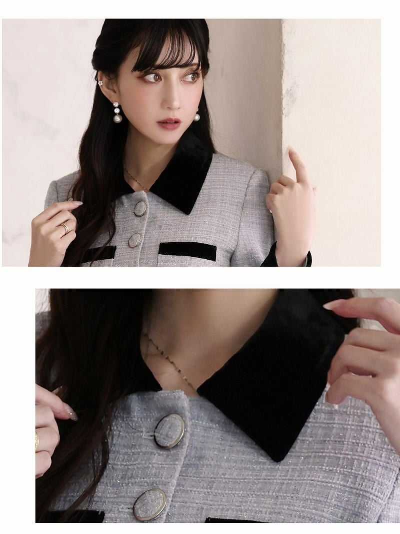 ※一部予約販売※ボレロ風ジャケットツイードキャバスーツ 加賀美早紀 着用セットアップ【BelsiaLUX】