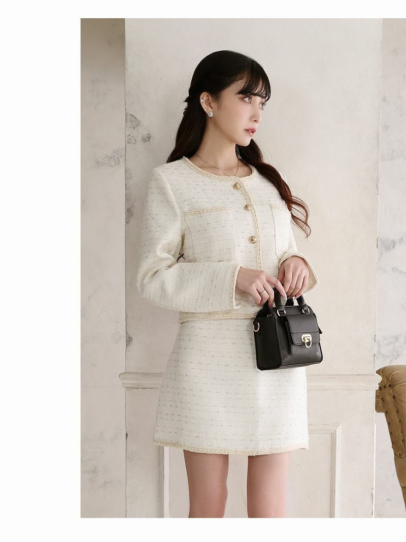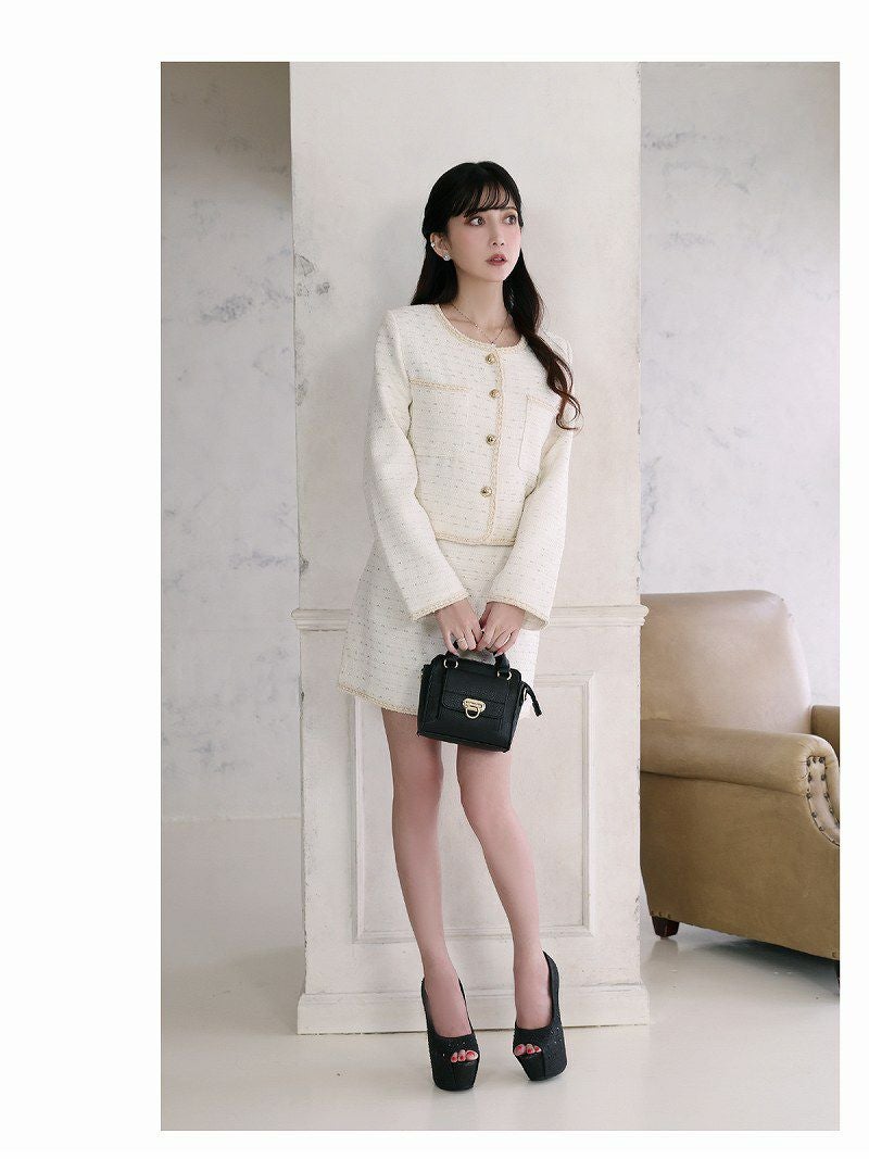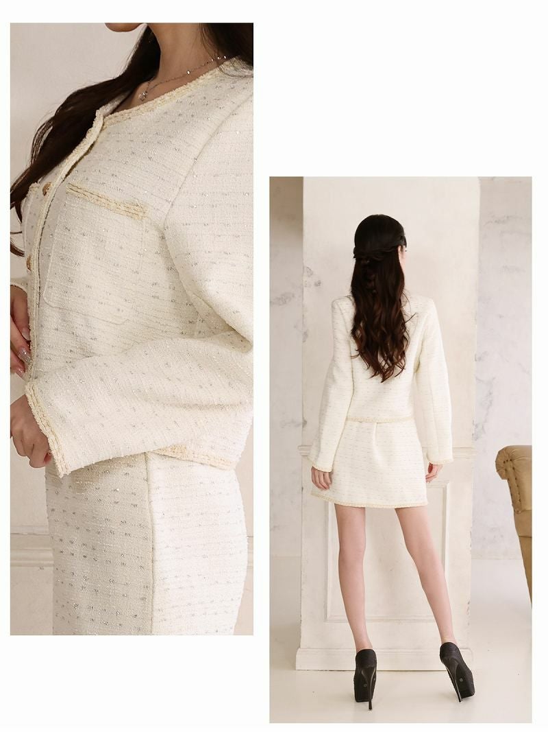 ホワイトラメツイードノーカラースーツ  加賀美早紀 着用 フォーマルスーツ【BelsiaLUX】