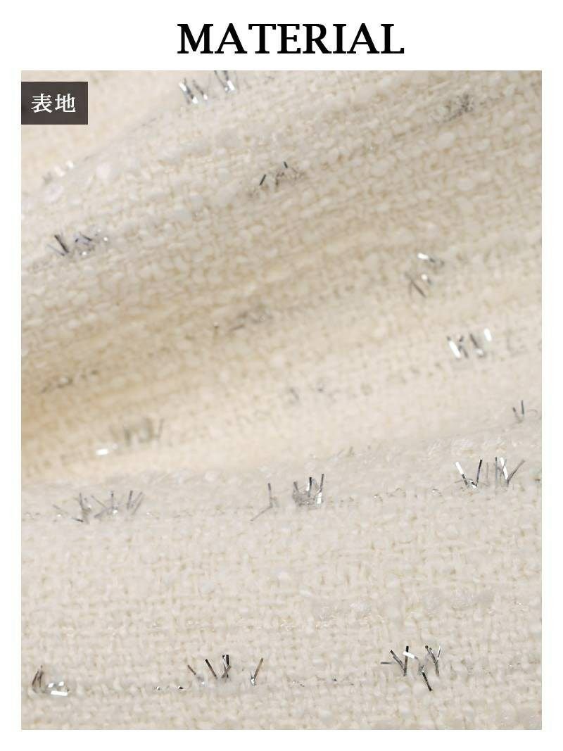 7. フォーマルスーツSALE¥12800→¥11520! ホワイトラメツイードノーカラースーツ 加賀美早紀 着用 フォーマルスーツ【BelsiaLUX】(M/L)(ホワイト)