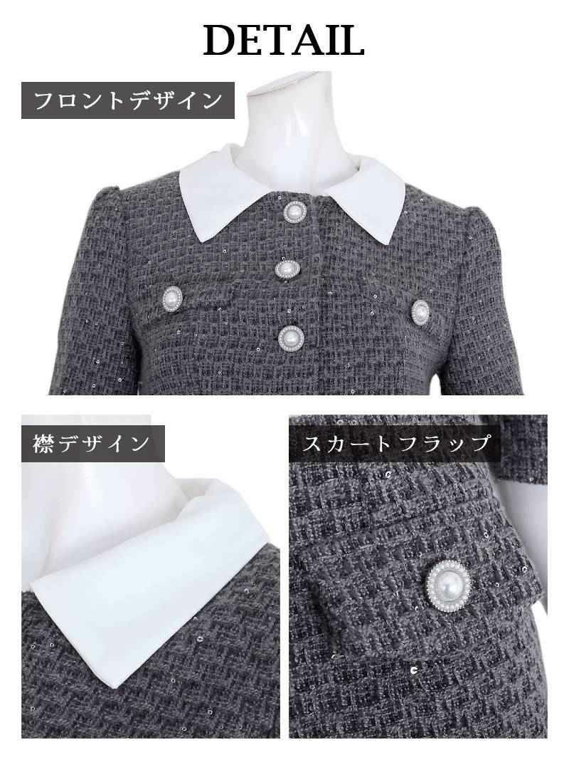 4. フォーマルスーツSALE¥14800→¥11840! パールボタンツイード襟付き韓国風プリーツスカートスーツ 武田静加 着用 キャバスーツ【Belsia】(S/M/L)(ブラック/グレー/アイボリー)