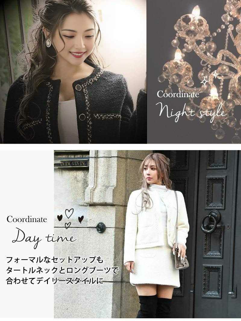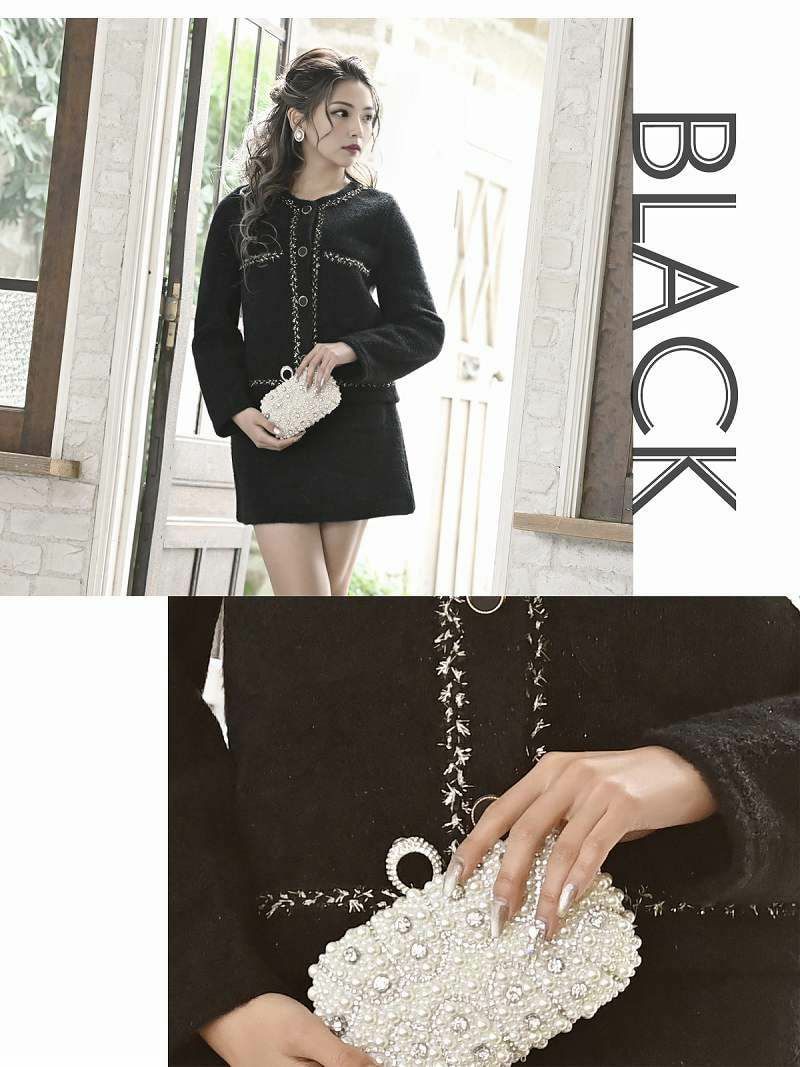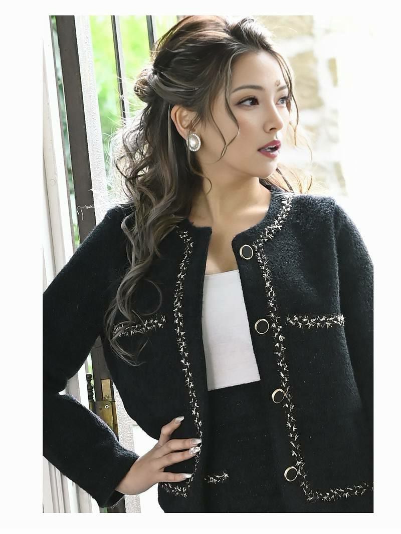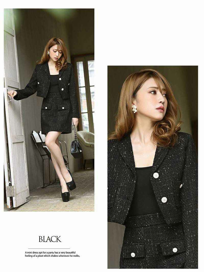 ライトツイード韓国風タイトセットアップスーツ【Belsia】(S/M/L/XL(2L))(ブラック/アイボリー)