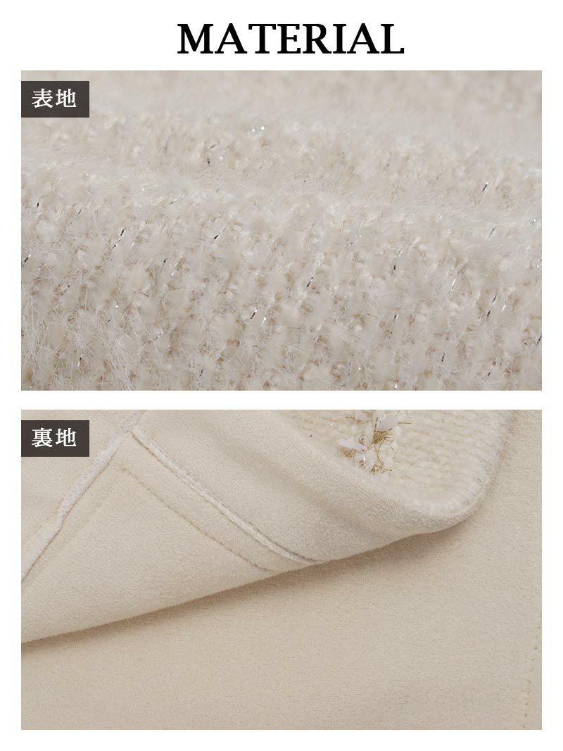 高級感のあるツイードノーカラースーツはホワイトカラーで清潔感アップ。