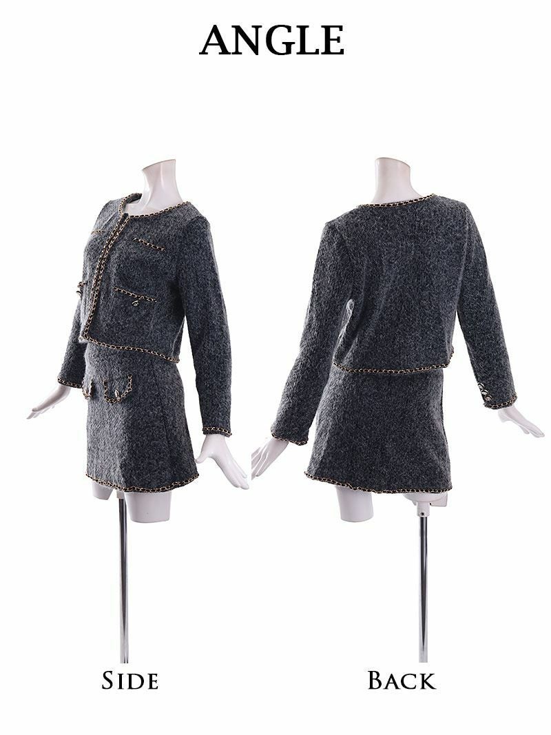 訳あり愛されツイード 【訳ありアウトレット】パステルカラーツイードスカートキャバスーツ【BelsiaLUX】(S/M/L)(ブラック/オフホワイト/ミント)