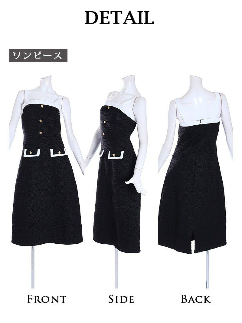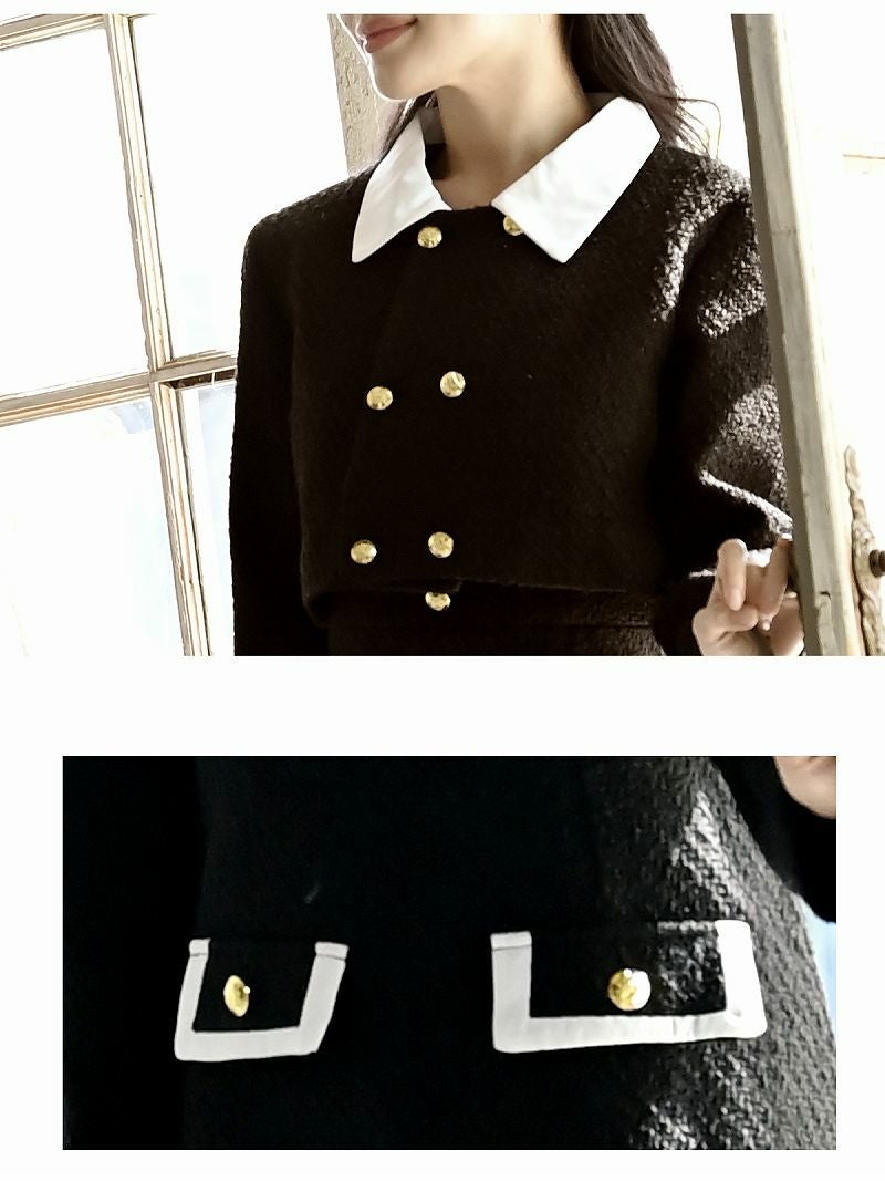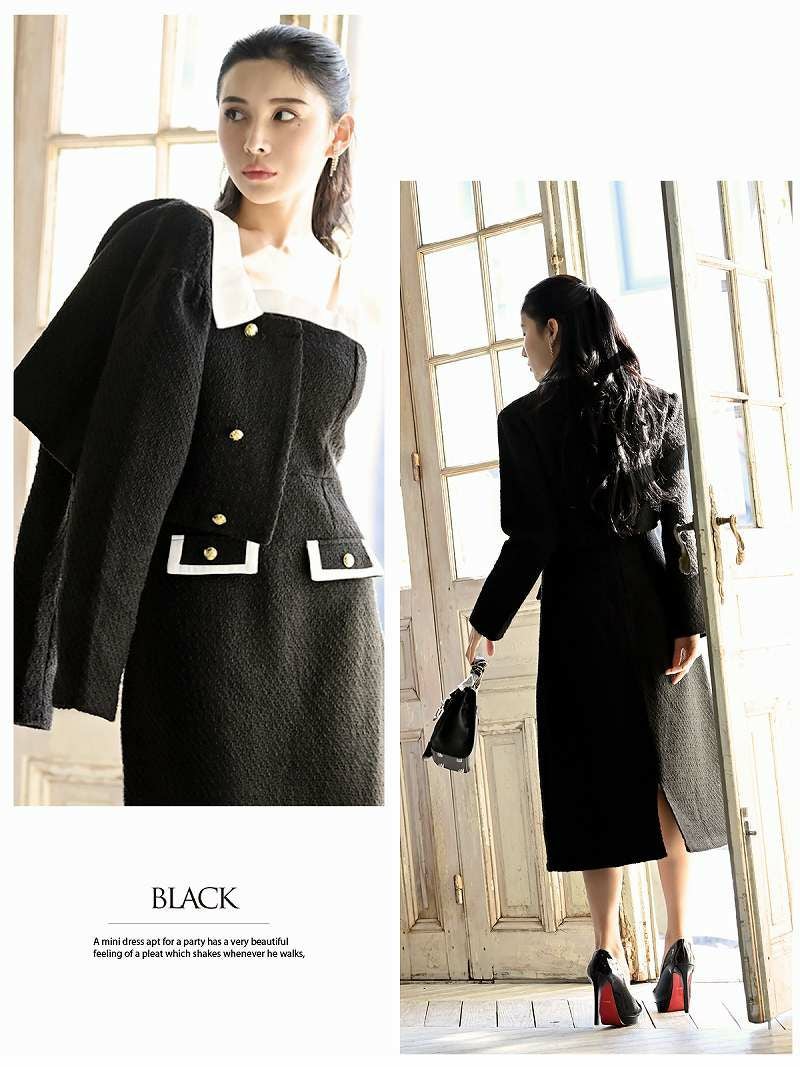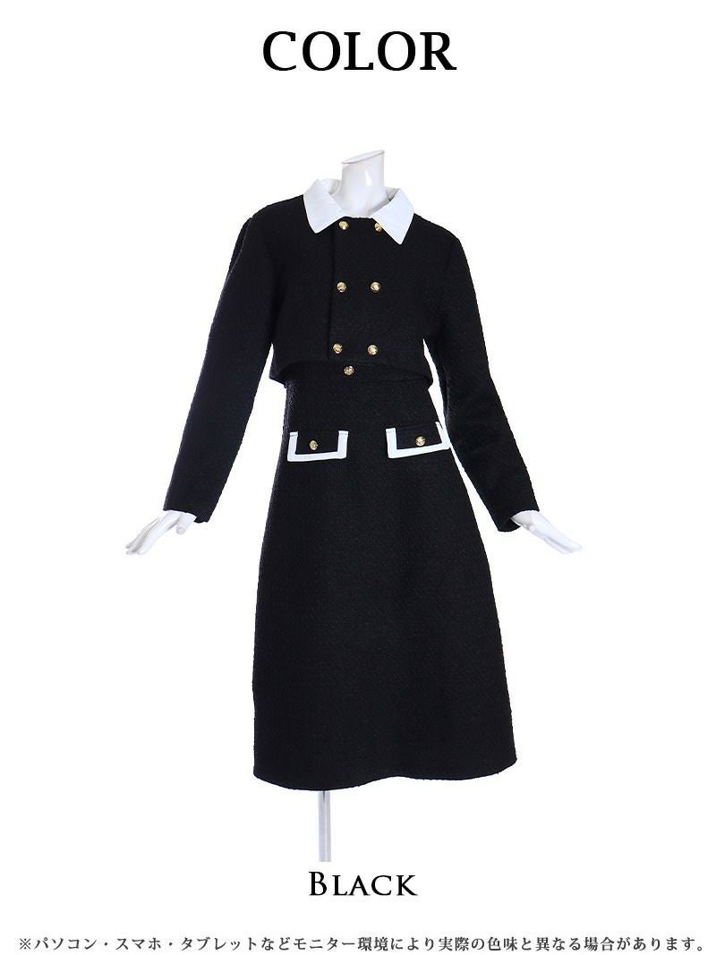 知的だけどどこか愛らしさも感じさせる モノトーンショート丈ジャケットセットアップワンピ韓国キャバスーツ【DAYS PIECE】(S/M)(ブラック)
