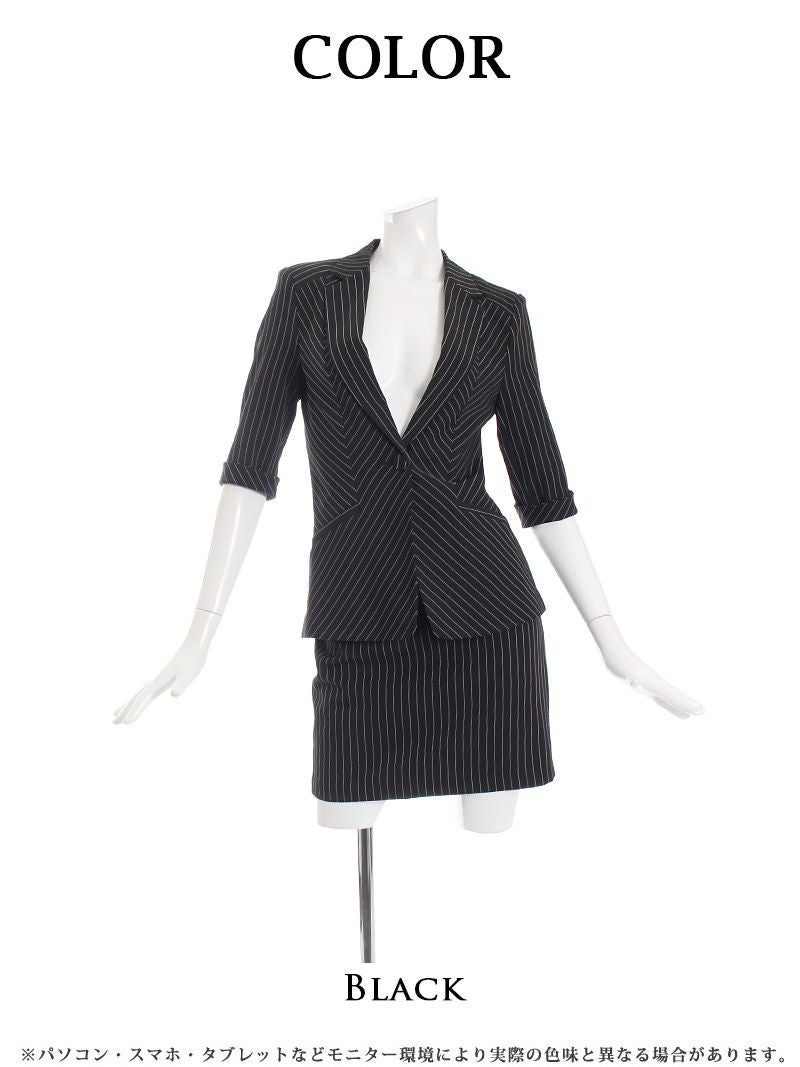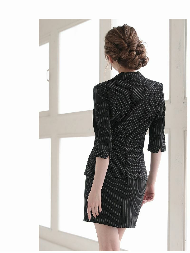 4. 【訳ありアウトレット】ジャケット付ストライプ柄スカートキャバスーツ【Belsia】(S/M/L/XL)(ブラック)