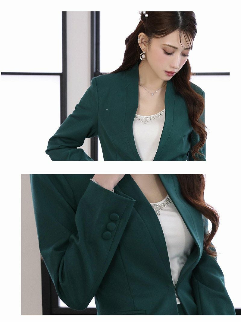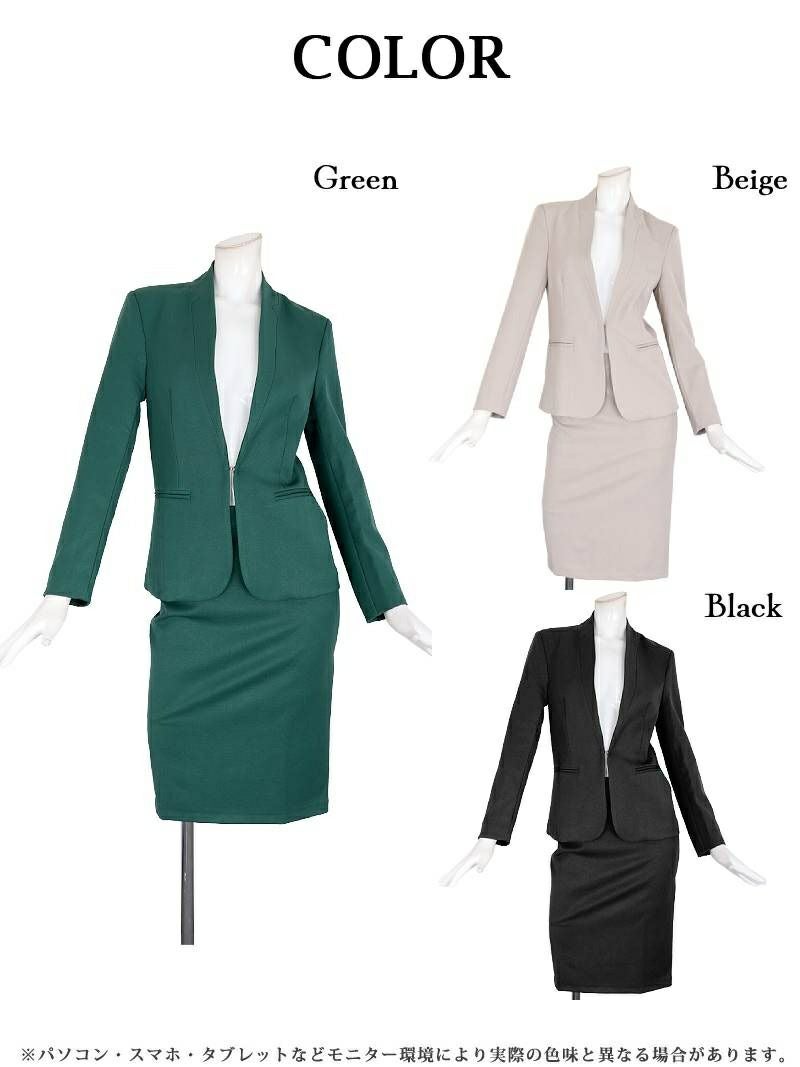 上品な装いで大人っぽく フォーマルスーツSALE¥9980→¥7984! 膝丈セットアップタイトキャバスーツ 加賀美早紀 着用 レディーススーツ【Belsia】(S/M/L/XL(2L)/XXL(3L))(ベージュ/グリーン/ブラック)
