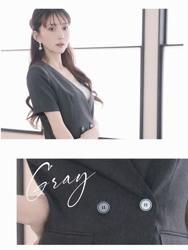 6. フォーマルスーツSALE¥12800→¥11520! エレガントシンプルデザイン半袖キャバスーツ 加賀美早紀 着用 キャバスーツ【Belsia】(S/M/L/XL(2L)/XXL(3L))(グレー/ベージュ)