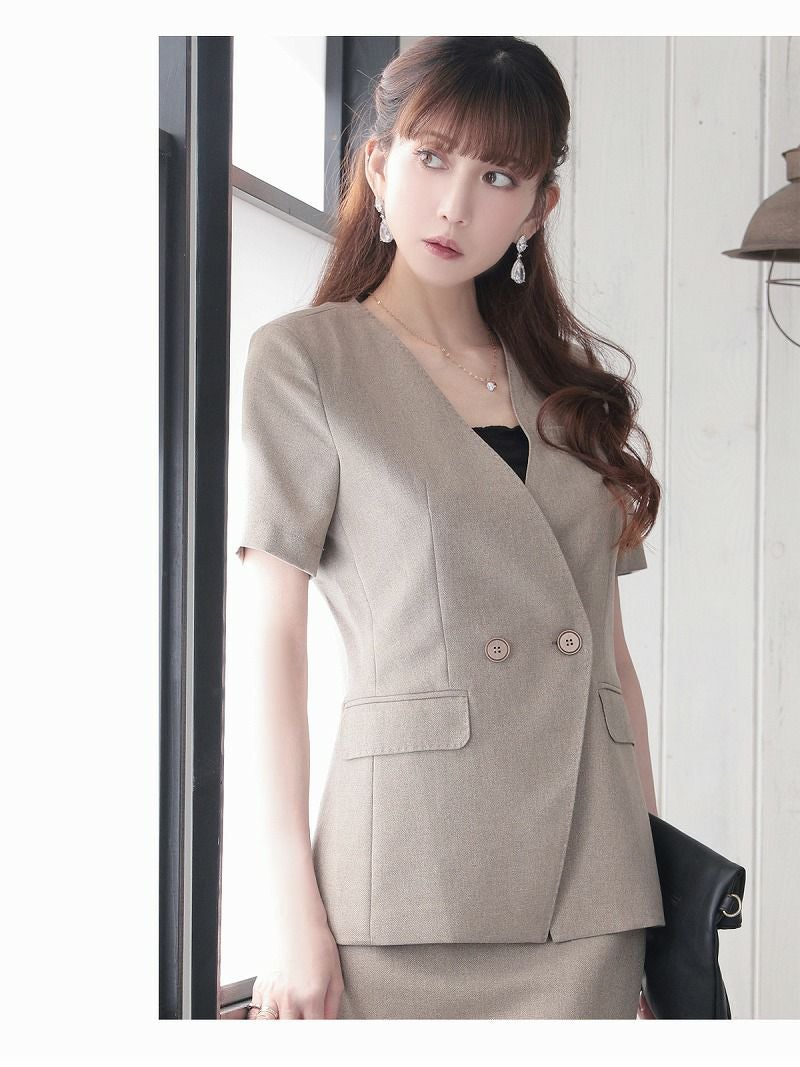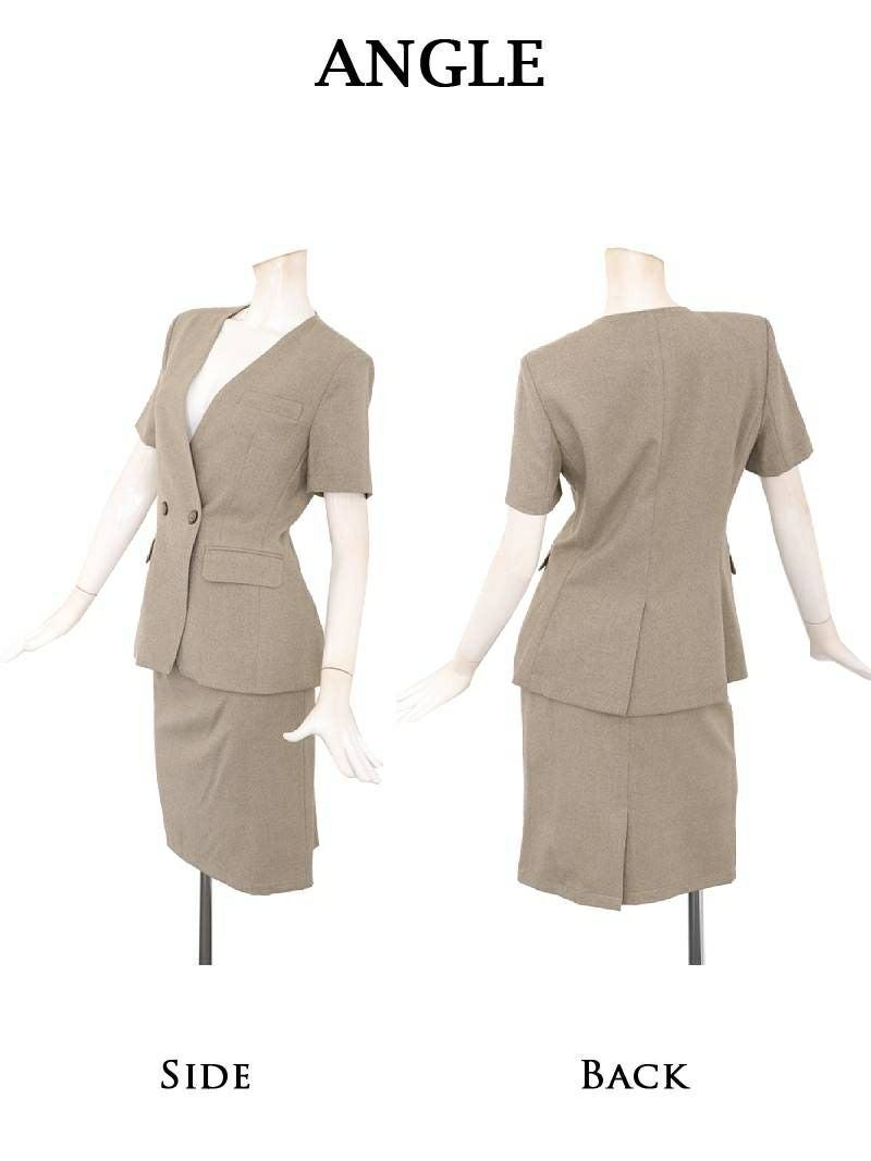 5. フォーマルスーツSALE¥12800→¥11520! エレガントシンプルデザイン半袖キャバスーツ 加賀美早紀 着用 キャバスーツ【Belsia】(S/M/L/XL(2L)/XXL(3L))(グレー/ベージュ)