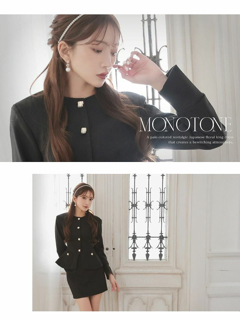 ノーカラーペプラムジャケット&ミニスカートセットアップスーツ【Ryuyu】