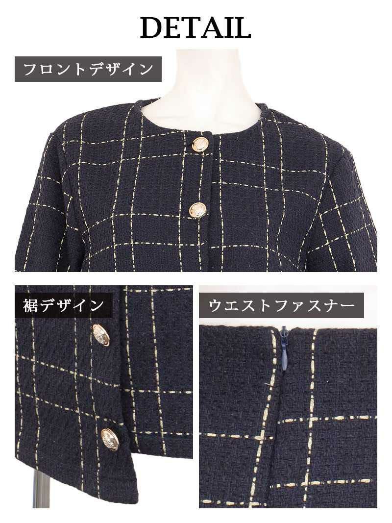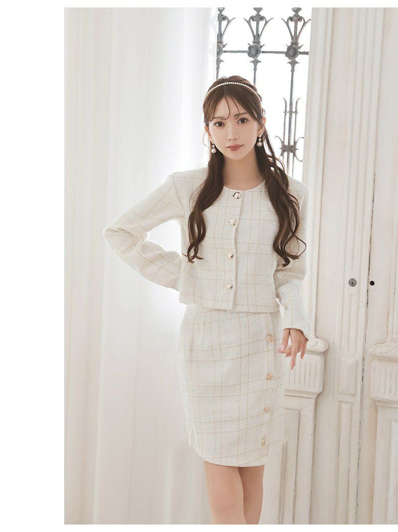 ゴールドラインチェック柄ノーカラーツイードセットアップキャバスーツ【Ryuyu】