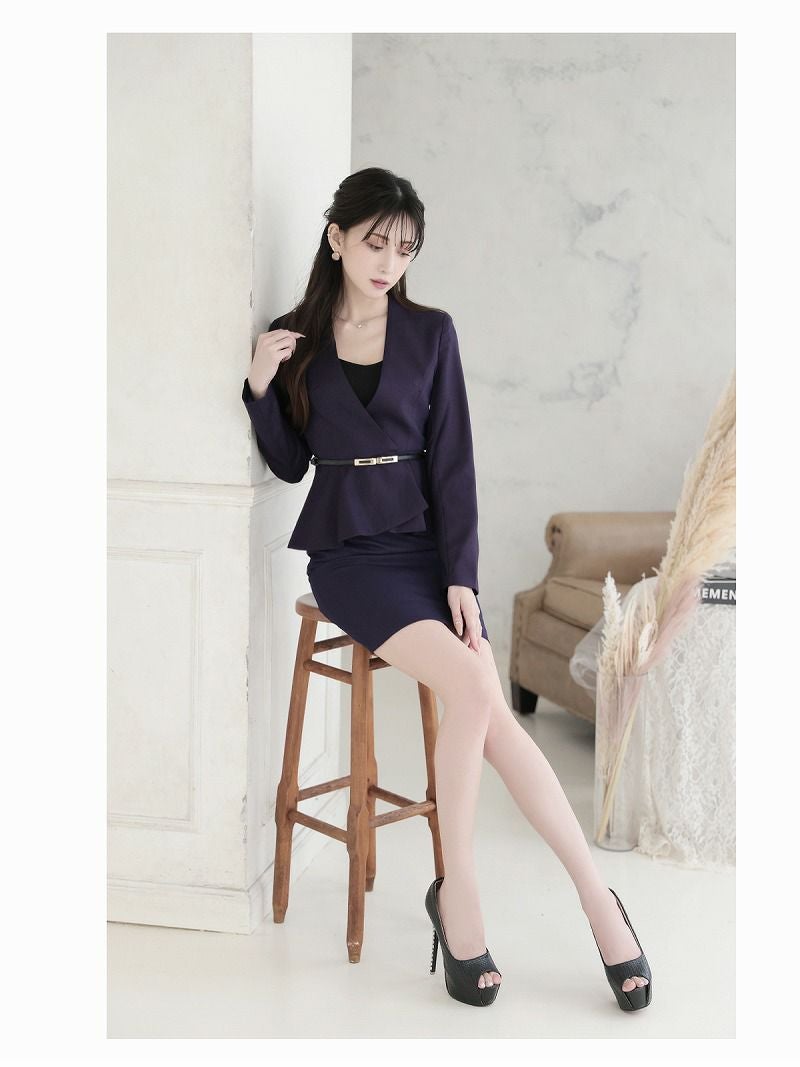 5. 先行予約割¥13800→¥13109!※一部予約販売※上質ノーカラージャケット&タイトミニスカートセットアップフォーマルスーツ 加賀美早紀 着用 キャバドレス【BelsiaLUX】(S/M/L/XL(2L))(パープル/グレー)