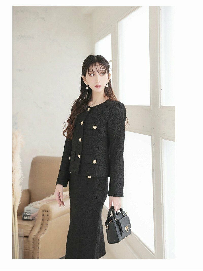 6. 先行予約割¥13800→¥13109!※一部予約販売※ゴールドボタンノーカラーツイードセットアップスーツ 加賀美早紀 着用 キャバスーツ【Belsia】(S/M/L/XL(2L))(ブラック(S/M/XL/3月下旬)/オフホワイト(S/M/3月下旬))
