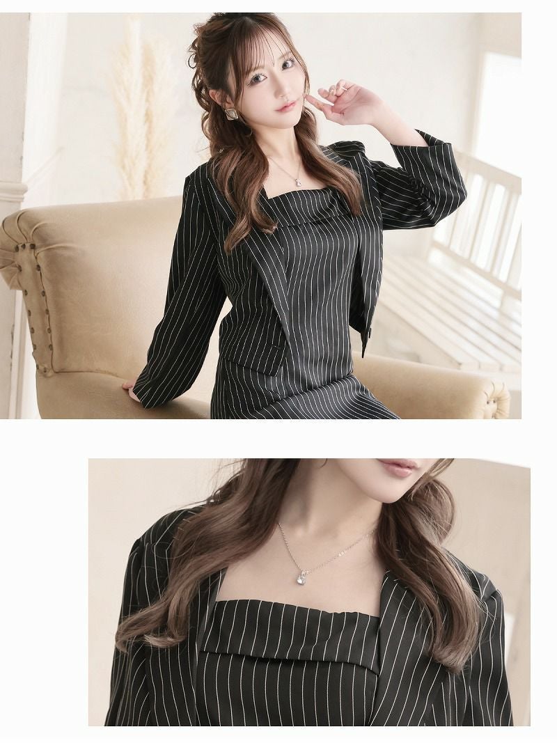 7. ストライプ柄ショート丈ジャケット付きタイトミニワンピーススーツ りせり 着用 キャバスーツ【RyuyuChick】(M/L/XL(2L)/XXL(3L))(ブラック)