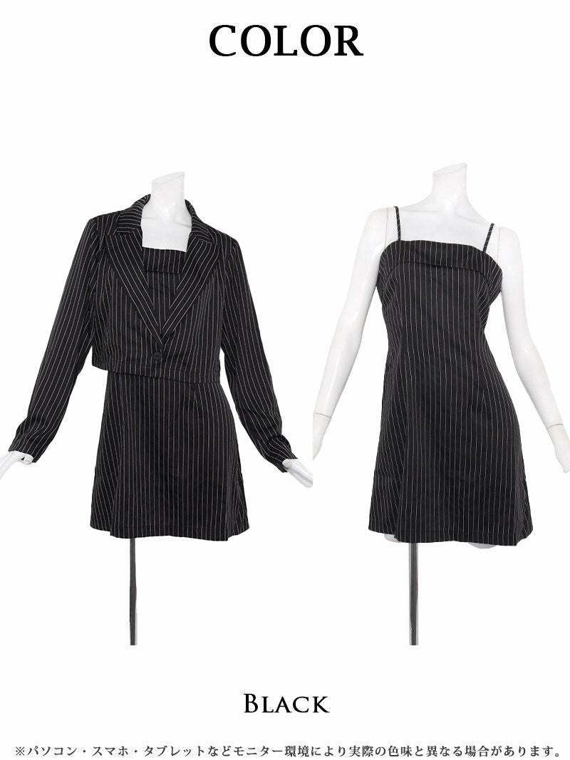 3. ストライプ柄ショート丈ジャケット付きタイトミニワンピーススーツ りせり 着用 キャバスーツ【RyuyuChick】(M/L/XL(2L)/XXL(3L))(ブラック)