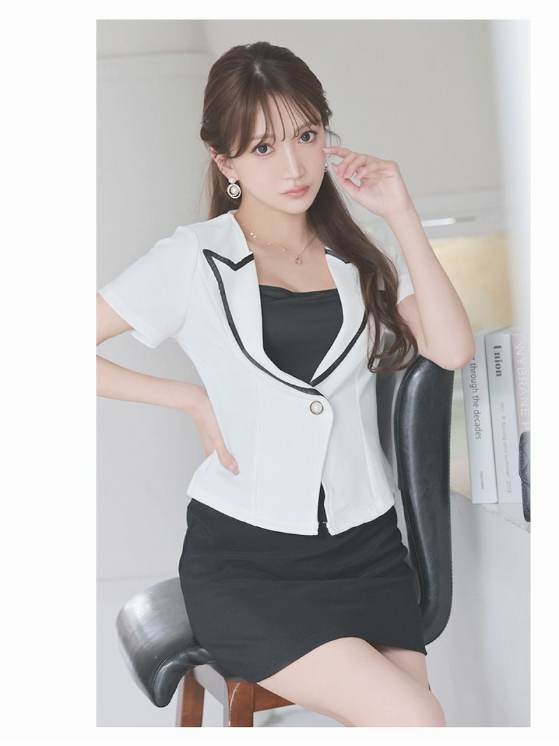 ミニスカートスーツで店内受け◎ セクシータイト半袖サマーキャバクラスーツ【Ryuyu】(S/M/L)(ホワイト/ブラック)
