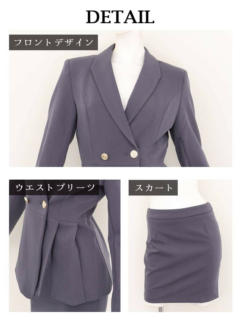 ゴールドボタンペプラムラインテーラードスーツセットアップ 加賀美早紀 着用 キャバスーツ【BelsiaLUX】(S/M/L/XL(2L))(ネイビー/グレー)