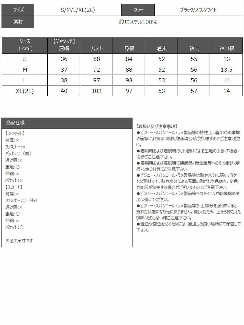 韓国風セットアップスーツ フォーマルスーツSALE¥12800→¥8960! キラキラツイードデザインキャバスーツ 武田静加 着用 プリーツスカートスーツ【Belsia】(M/L)(ブラック/ホワイト)