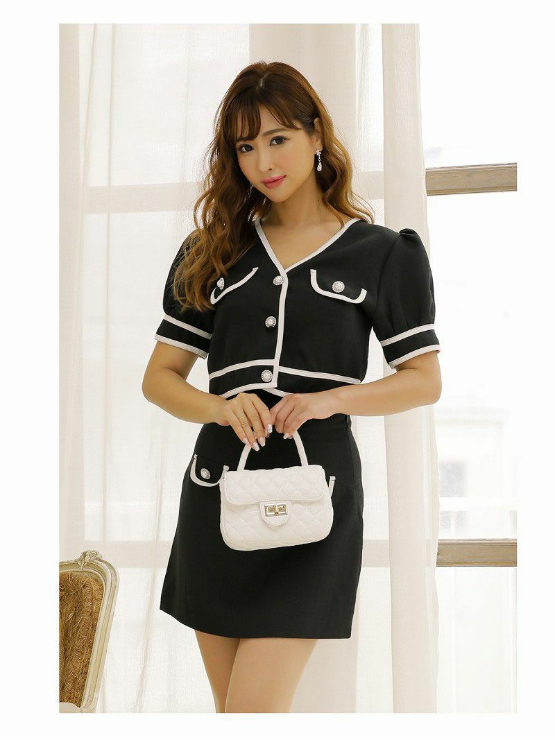訳あり激かわ2ピース 【訳ありアウトレット】半袖ミニスカートセットアップキャバスーツ 【Ryuyu】(S/M)(ブラック/ホワイト)