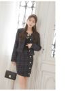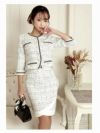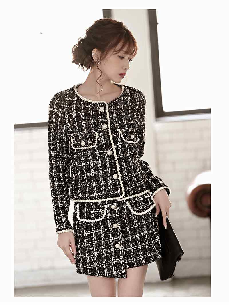 上品なモテ可愛いスーツ ライトツイード韓国風タイトセットアップスーツ【Belsia】(S/M/L/XL(2L))(ブラック/アイボリー)
