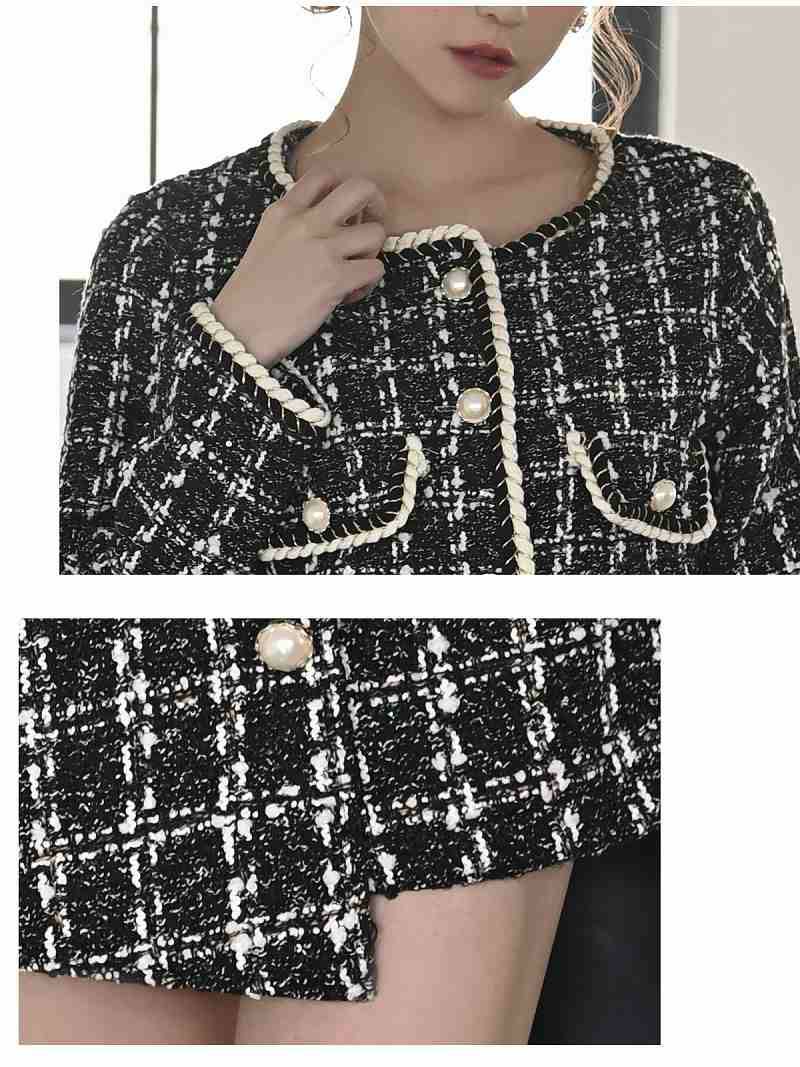 品格漂うバイカラーツイードで、周りと差がつく洗練された大人スタイルを叶えます。 バイカラー厚手ツイードチェック柄セットアップノーカラーミニ丈キャバスーツ 【Ryuyu】(S/M/L/XL(2L)/XXL(3L))(ブラック)