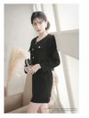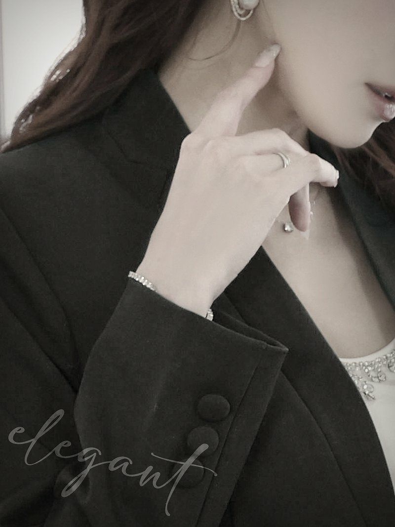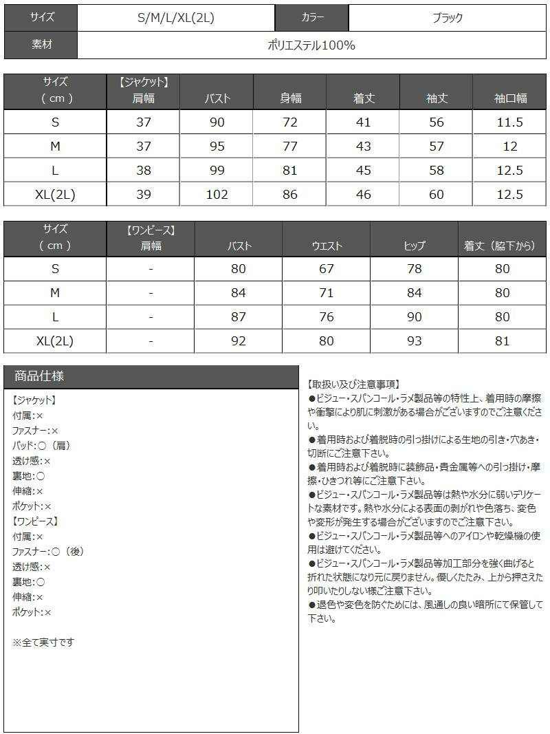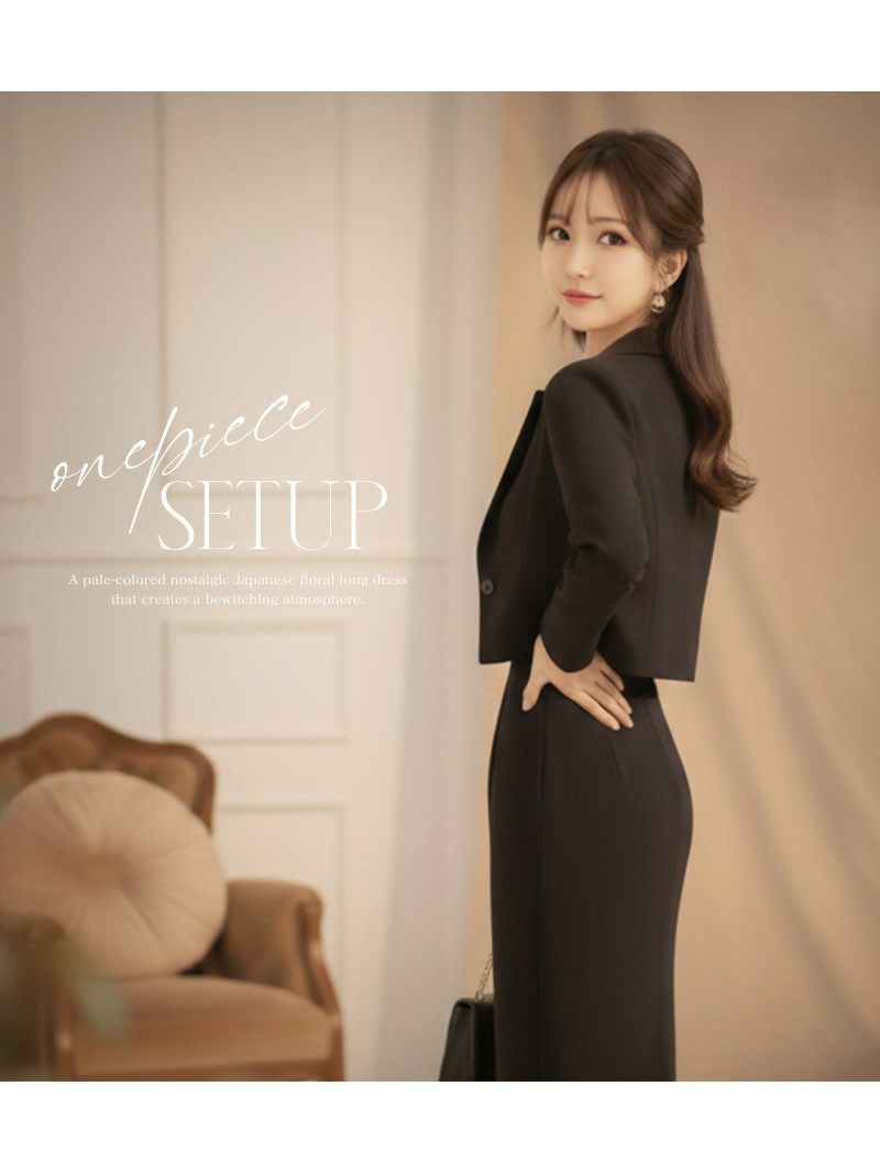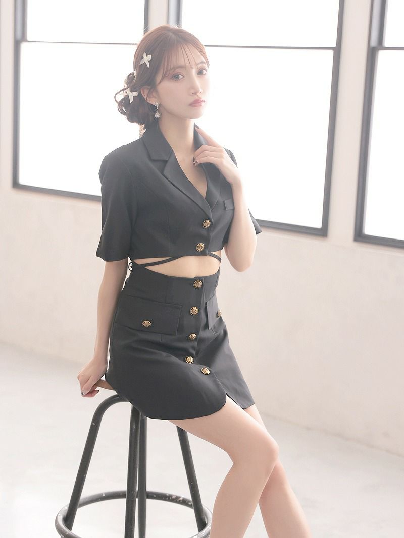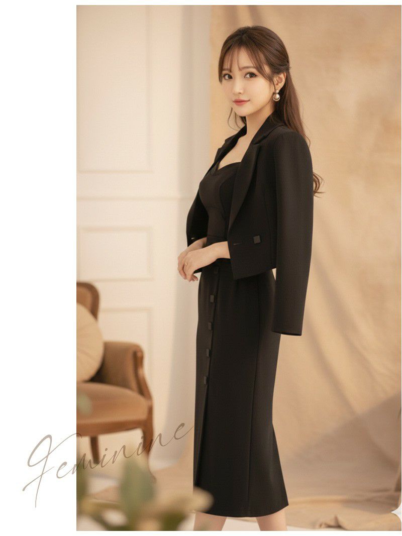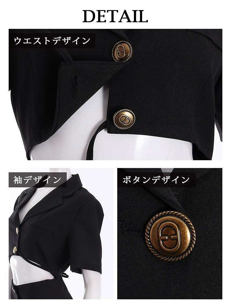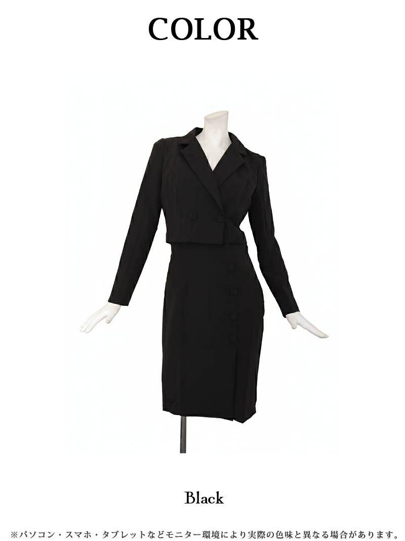クールな色気を纏う、ボタンデザインがアクセントのブラックセットアップ。 飾りボタン付きタイトワンピース&ショート丈ジャケットセットアップキャバスーツ 【Ryuyu】(S/M/L/XL(2L))(ブラック)