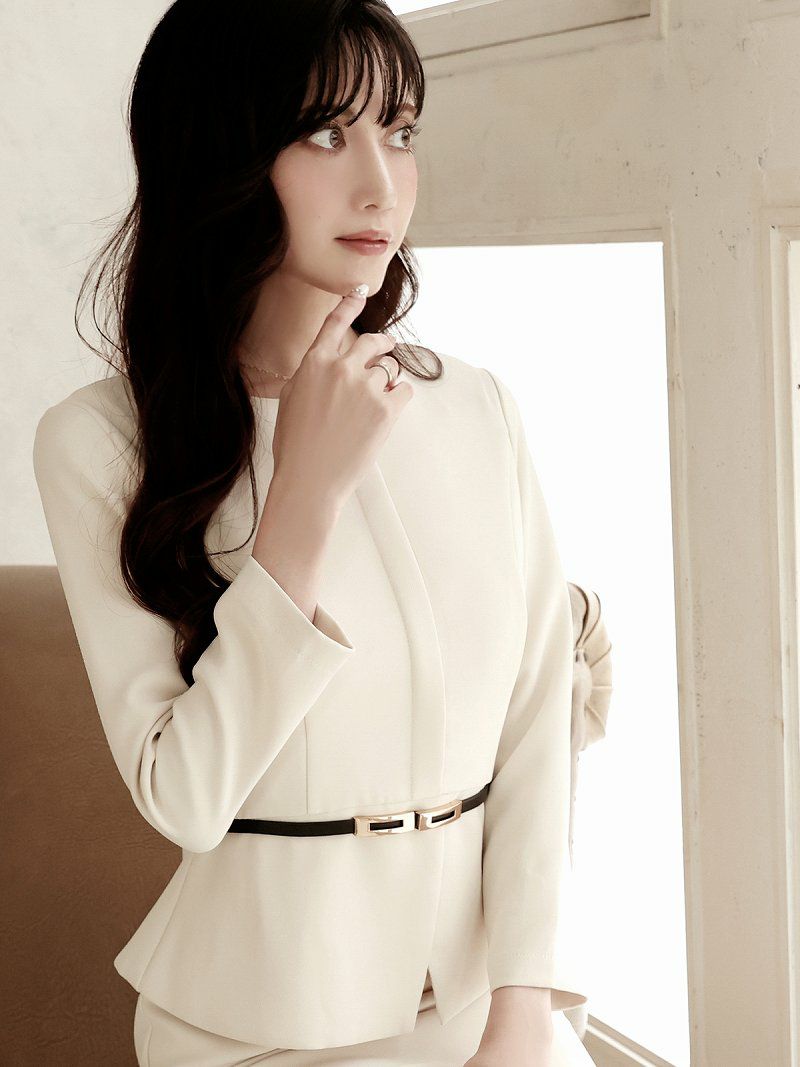 タイトシルエットが体型を美しく魅せる 先行予約割¥9980→¥9480!※一部予約販売※ペプラムデザインフォーマルキャバスーツ 加賀美早紀 着用 レディーススーツ【Belsia】(S/M/L/XL/3L)(オフホワイト/ブラック/ネイビー)