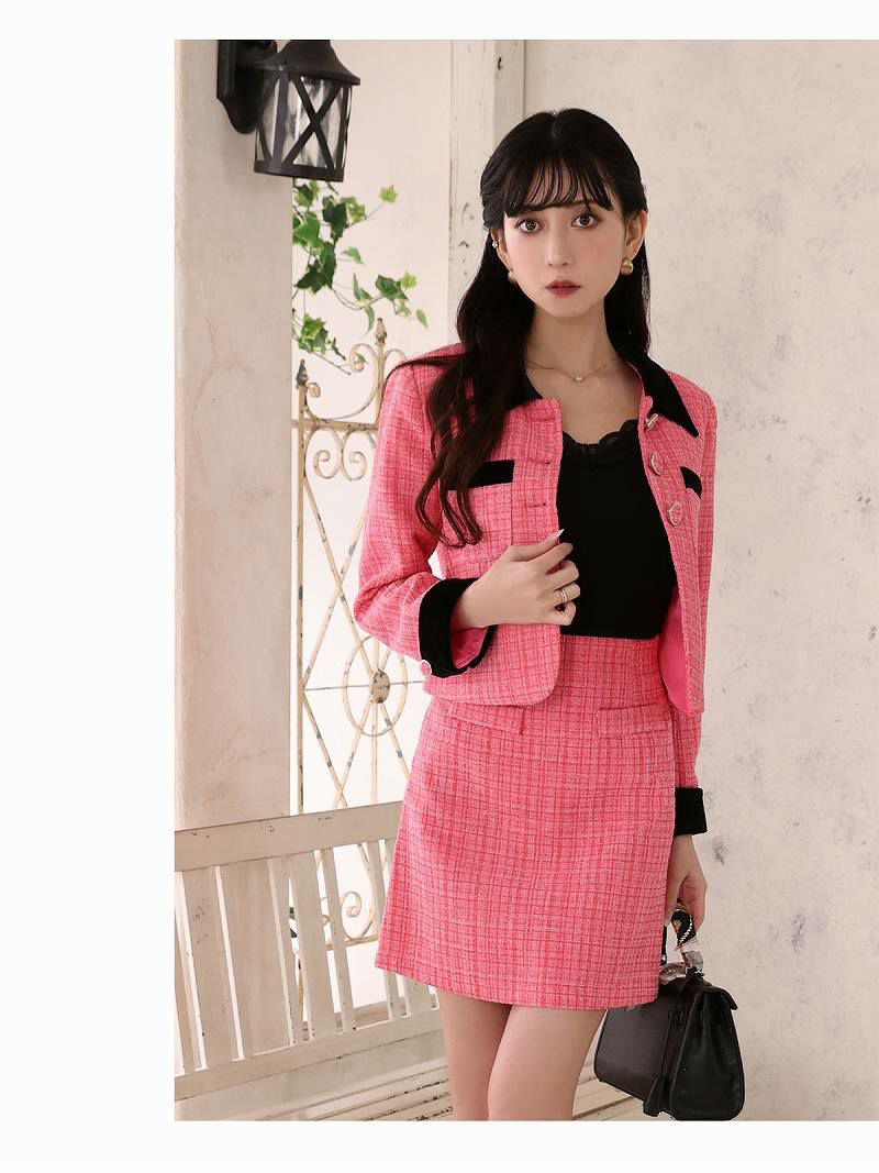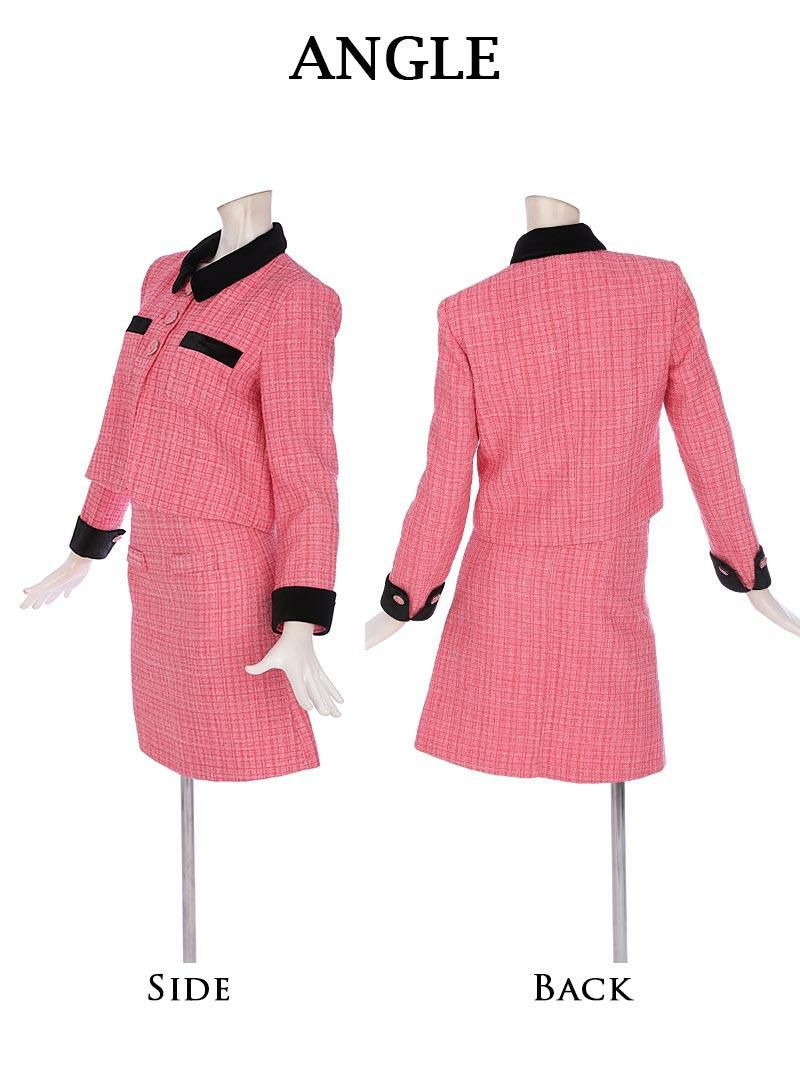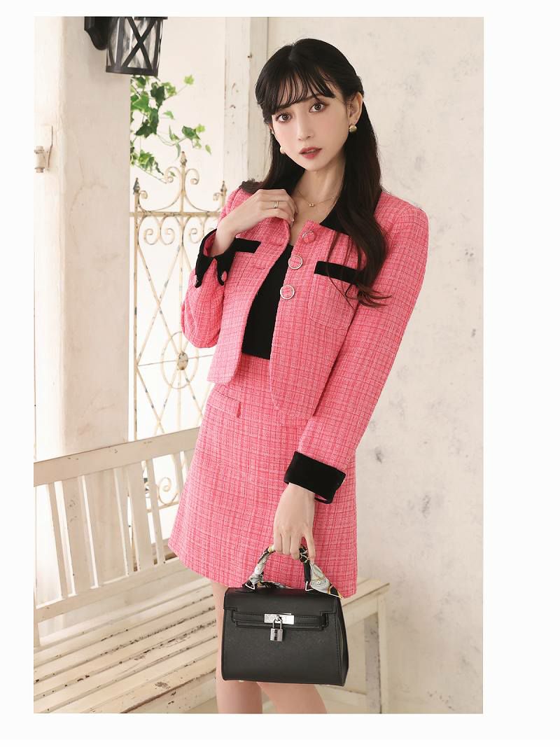 カラースーツで華やかに スーパーSALE¥9480→¥8532! カラーツイード膝丈2pキャバクラスーツ 加賀美早紀 着用キャバスーツ 【Belsia】(S/M/L/XL(2L))(ブラック/ピンク)