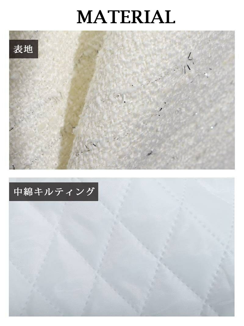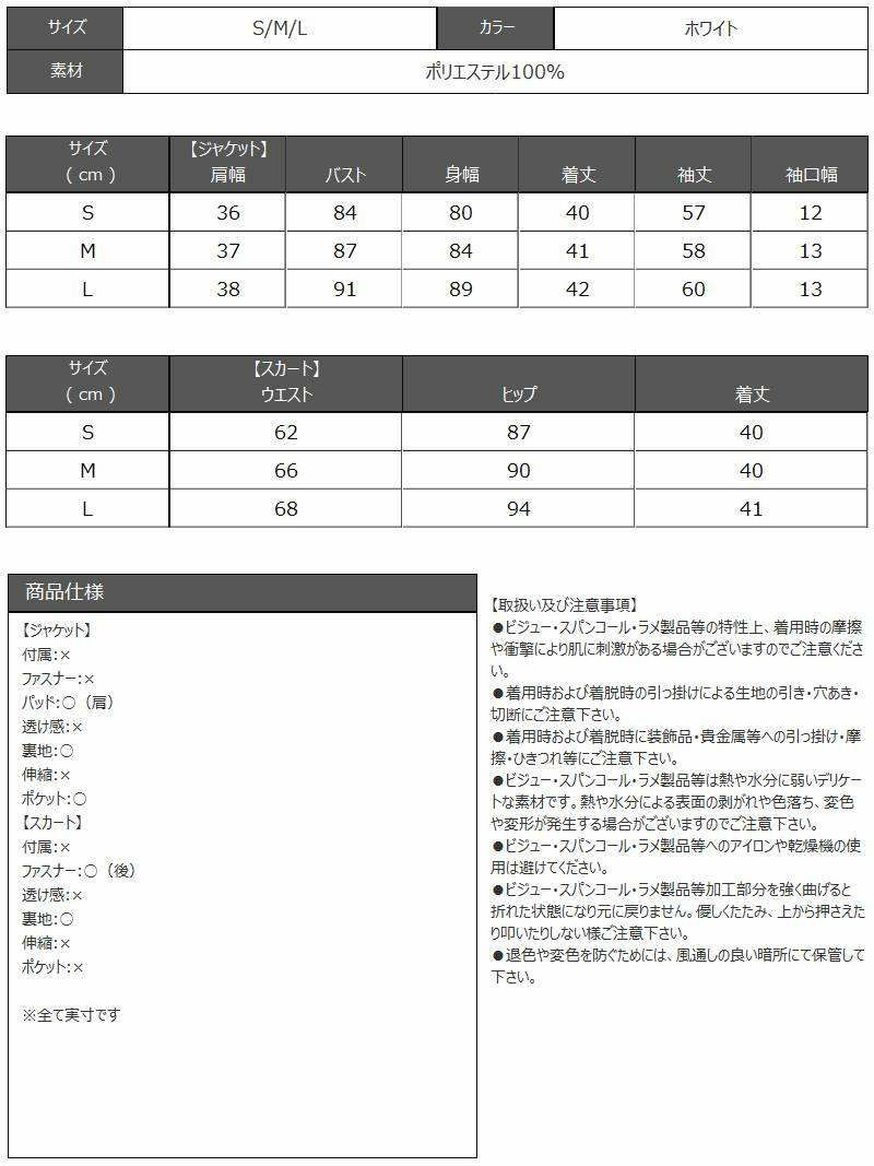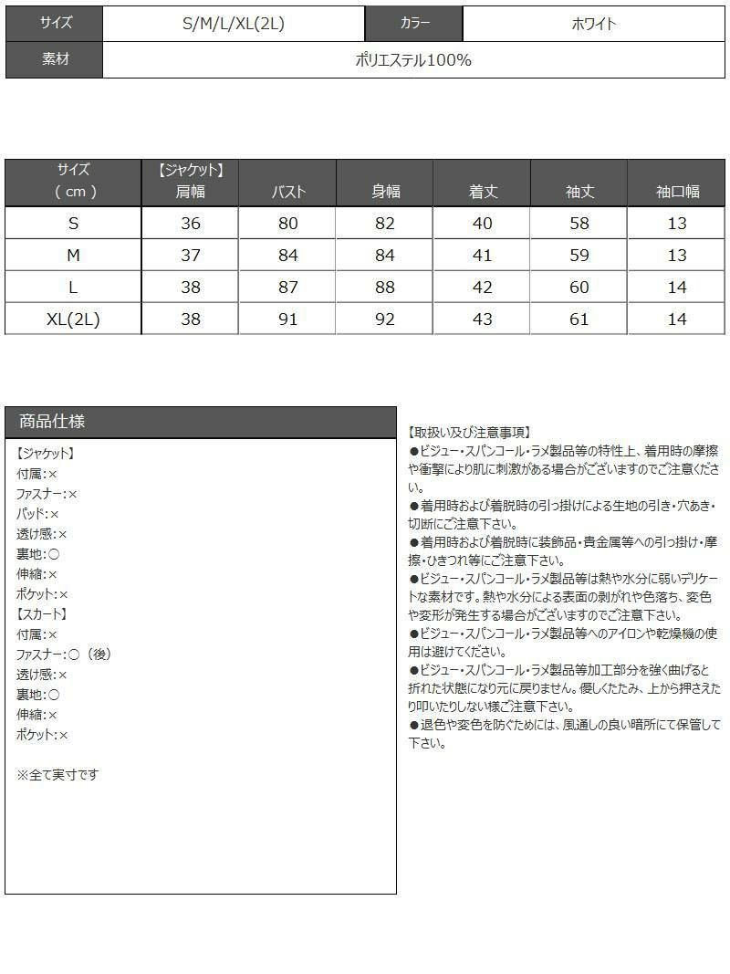 上品な可愛さで印象に残る私に。 スーパーSALE¥12800→¥11520! ホワイトラメツイードノーカラースーツ 加賀美早紀 着用 フォーマルスーツ【BelsiaLUX】(M/L)(ホワイト)
