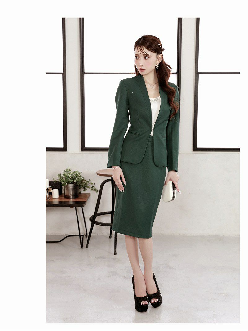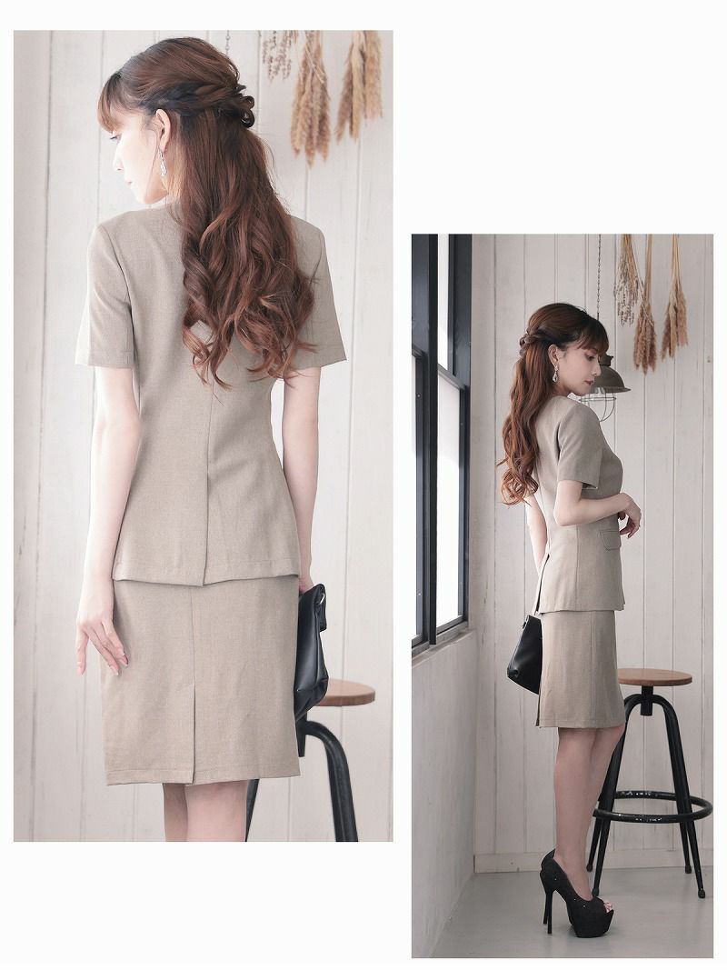 上品な装いで大人っぽく スーパーSALE¥9980→¥8981! 膝丈セットアップタイトキャバスーツ 加賀美早紀 着用 レディーススーツ【Belsia】(S/M/L/XL(2L)/XXL(3L))(ベージュ/グリーン/ブラック)
