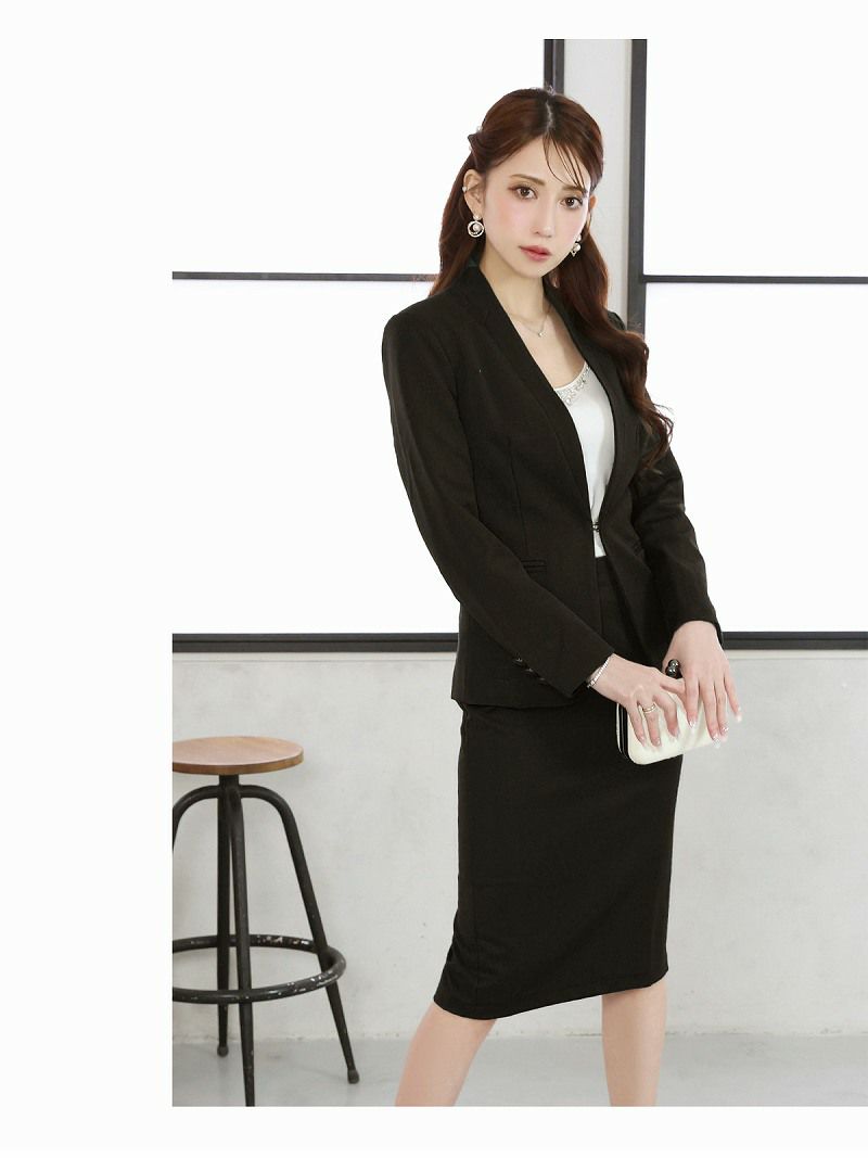 サイズ展開豊富なレディーススーツが登場! 先行予約割¥9880→¥9385!※一部予約販売※袖付きタイトスカートノーカラーキャバスーツ 加賀美早紀 着用 レディーススーツ【Belsia】(S/M/L/XL(2L)/XXL(3L)/XXXL(4L))(ブラック/ホワイト)