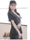 体型カバーしつつ上品に魅せるキャバスーツ スーパーSALE¥12800→¥10239! エレガントシンプルデザイン半袖キャバスーツ 加賀美早紀 着用 キャバスーツ【Belsia】(S/M/L/XL(2L)/XXL(3L))(グレー/ベージュ)