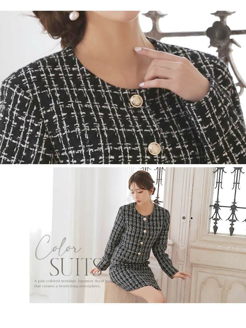 ツイードデザインが大人可愛く♪ スーパーSALE¥9880→¥6915! チェック柄カラーツイードレディースフォーマルスーツ 加賀美早紀 着用 キャバスーツ【BelsiaLUX】(S/M/L)(ブラック/オフホワイト/ミント)